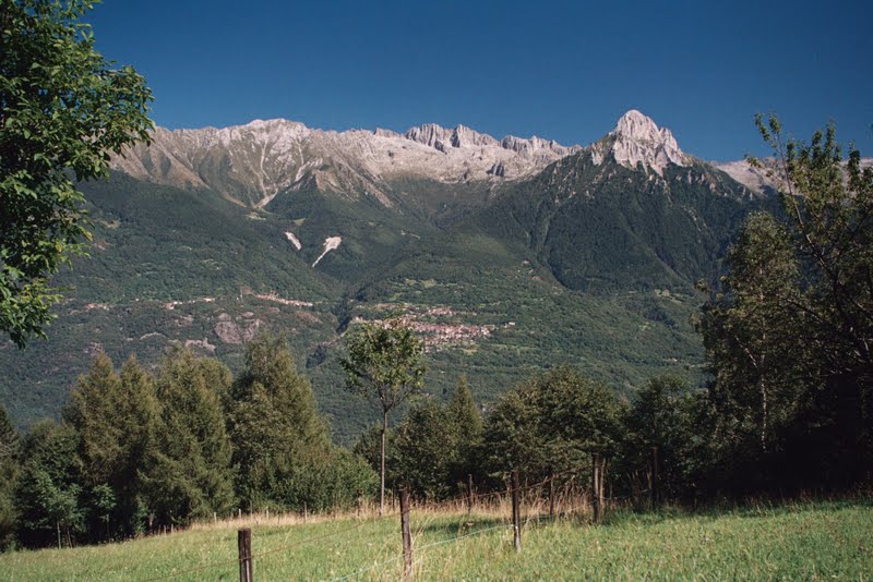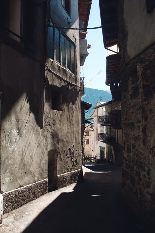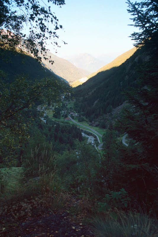 Dziewiąta zastała nas pół godziny powyżej wsi. Zdesperowane zamachałyśmy na jakiś (jedyny niestety) zjeżdżający z góry samochód, ale kierowca nas minął. Wprawdzie otworzył okno i coś do nas krzyknął… ale odjechał, a tego co powiedział nie zrozumiałyśmy. Szłyśmy więc dzielnie asfaltem w dół z nadzieją, że dalej będzie więcej ludzi. Ze 20 minut później ten sam kierowca wrócił, a potem zwiózł nas nie tylko do doliny Camonica (gdzie pewnie jechał autobus) ale i dalej doliną w dół. Tak sugestywnie opisał nam (po włosku) zalety masywu Concarena, że postanowiłyśmy go nie ominąć. Zamiast najłatwiejszego wyjścia- wjazdu na Passo Vivione i pójścia jakimś wysoko biegnącym szlakiem, wybrałyśmy strome podejście z samego dna doliny. Capo di Ponte leży tylko 300 metrów nad poziomem morza.