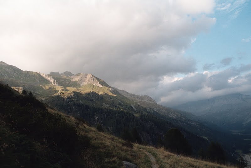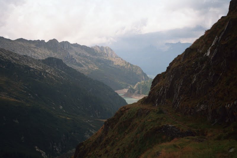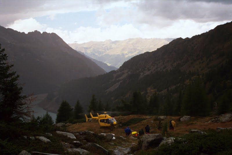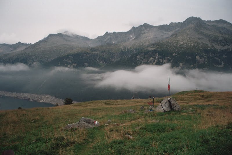 Było piękne sobotnie popołudnie. Z Włochami umówiłyśmy się dopiero w środę. 3 dni zapasu (na niepewny autostop) dawały nam teraz sporą szansę żeby sobie w miarę spokojnie w Orobie przejść. Nasza mapa kończyła się wprawdzie na Passo di Campo, ale znam Adamello na tyle dobrze, że nie widziałam większych problemów. Przed nami piętrzyły się kolejne grzbiety, ale przejście ich górą wydawało się szybsze niż objechanie w kółko dolinami- do tego chodzenie jest znacznie ciekawsze. Wyruszyłyśmy więc ochoczo prosto na zachód. Bez mapy bo na nasze nieszczęście przez Passo di Campo przebiega granica prowincji … a mapy gór w prowincji Brescia w Trentino nie sprzedawano.