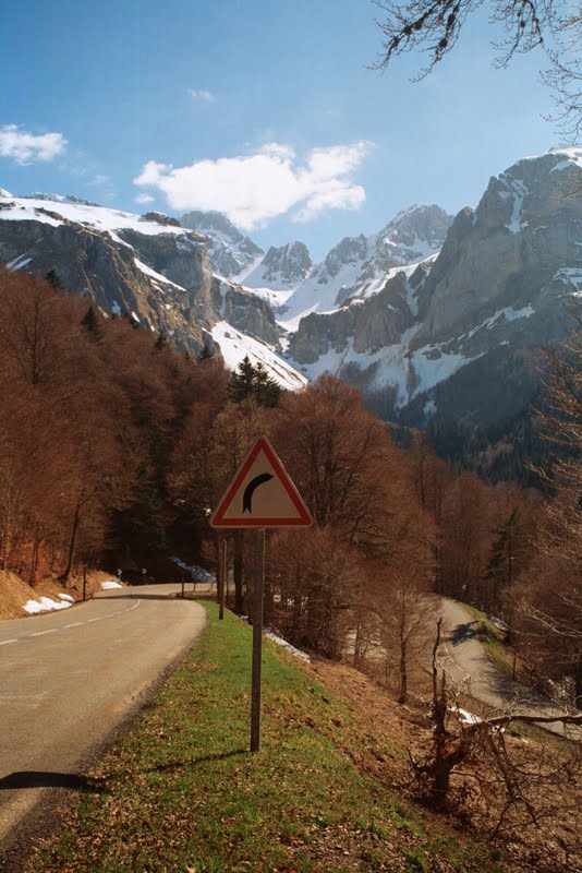 -Złap stopa- pokazywała mi pani na migi. Złapałam. Zatrzymał się pierwszy przejeżdżający samochód. Pięknie wyglądał masyw Aspe z drogi. Koniecznie muszę się tam kiedyś zatrzymać i go sfotografować.