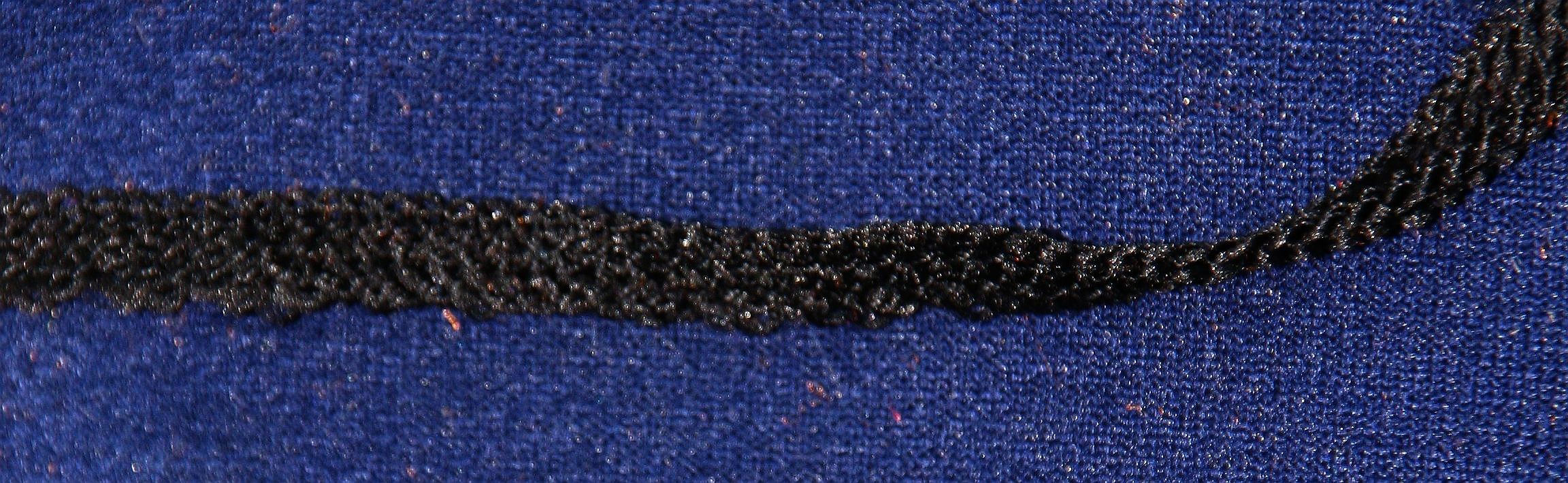 Czarne nici pogłębiają granat. W kontakcie z nimi wydaje się bardziej intensywny, wręcz mroczny.