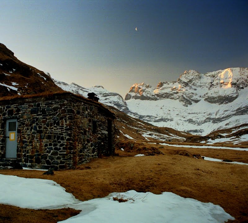 Widuję je i w Alpach i w Pirenejach. Nie zawsze są zaznaczone na mapach. Czasem na jakimś skrzyżowaniu szlaków wisi karteczka: „Postawiliśmy nowy biwak, jest 20 minut stąd. Posprzątajcie i uszanujcie. Gmina X „. Czasem ktoś spotkany przypadkiem mówi: „wiecie że tam i tam otwarto schron?” Taka historia zdarzyła nam się i teraz. W jednym ze starych, pochodzących z lat 70-tych biwaków spotkaliśmy parę starszych od nas ludzi. Biwak imienia włoskiego alpinisty, nieżyjącego już od kilkudziesięciu lat. Na ścianie wisiało zdjęcie.