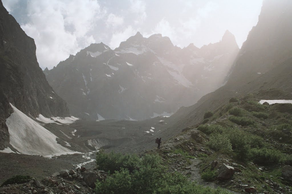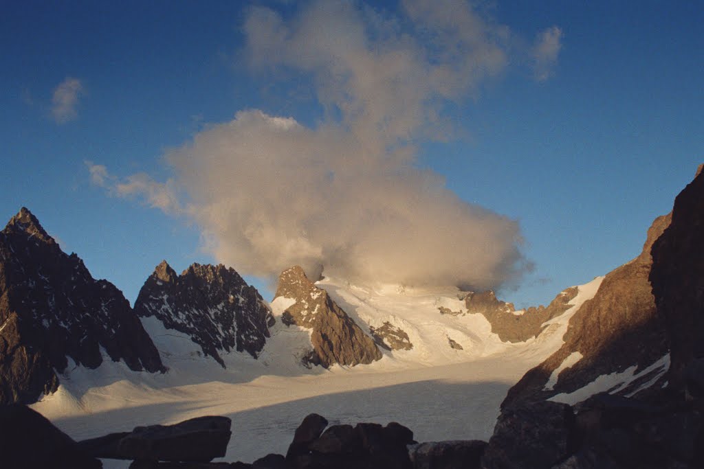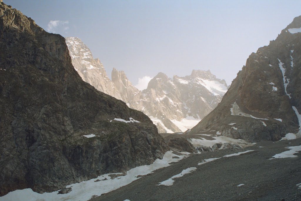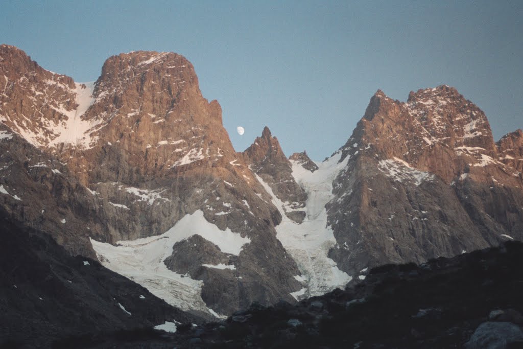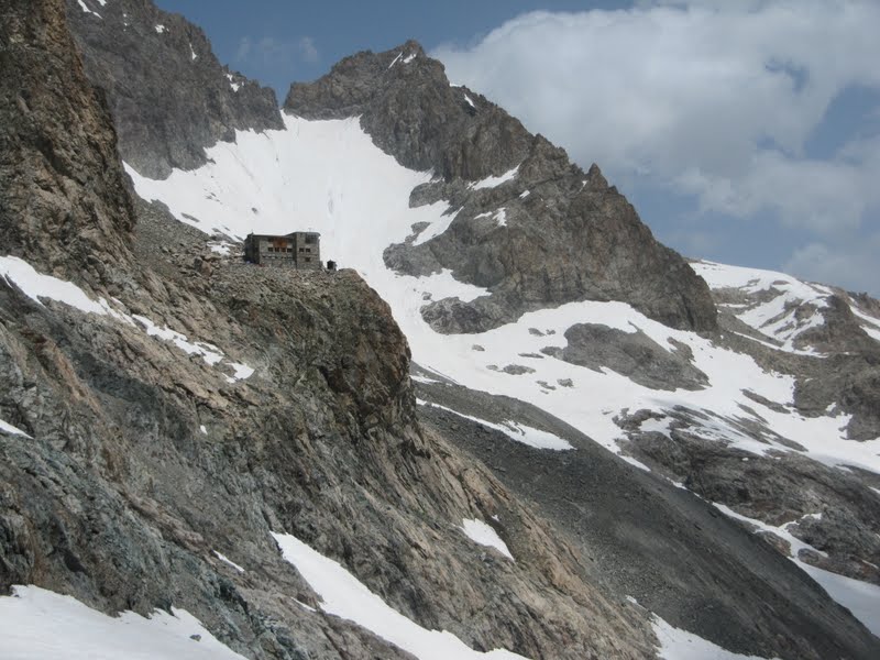 Morena kończy się stromym balkonem. Obok jest kilka przestronnych kolib. Spaliśmy w najniższej z nich z pięknym widokiem na Mont Pelvoux.