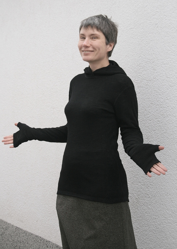 …PS5 (13 maja 2013) Testowałam tą czarną koszulkę przez 3 tygodnie w kwietniu w Pirenejach. Niemal wcale jej nie zdejmowałam. Nosiłam na cienką wełnę i pod powerstretcha. Koszulka nie gryzła i nie śmierdziała (chociaż musiała być bardzo brudna, nie prałam jej). Kapturek bardzo się przydawał, pasuje i pod zimowa czapkę i pod przeciwsłoneczny kapelusz. Sam też jest fajny, nie tak ciepły jak czapka, a jednak sporo daje. Łapki są mniej praktyczne, ale czasem fajnie je mieć. Zasłaniają dłonie przed słońcem. Rewelacyjna koszulka. Bardzo się w niej dobrze czułam. Dwie warstwy wełny pod powerstretchem działają. Nigdzie nie gromadził się pot. Taki zestaw jest bardzo sensowny wiosną kiedy temperatura nieustannie się zmienia. Podobnie będzie jesienią i w wysokich górach latem.