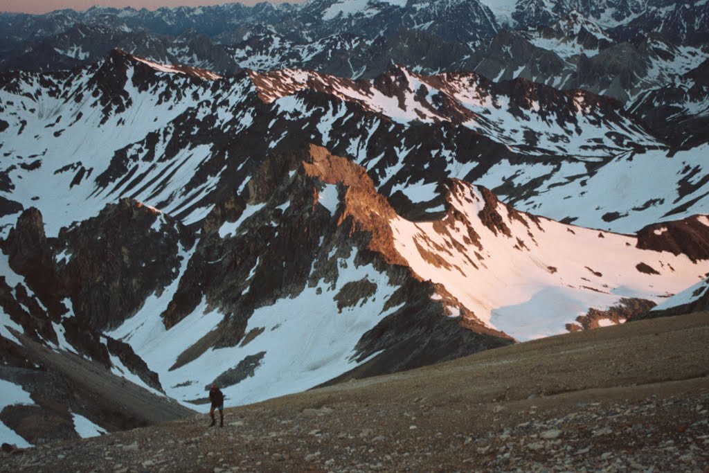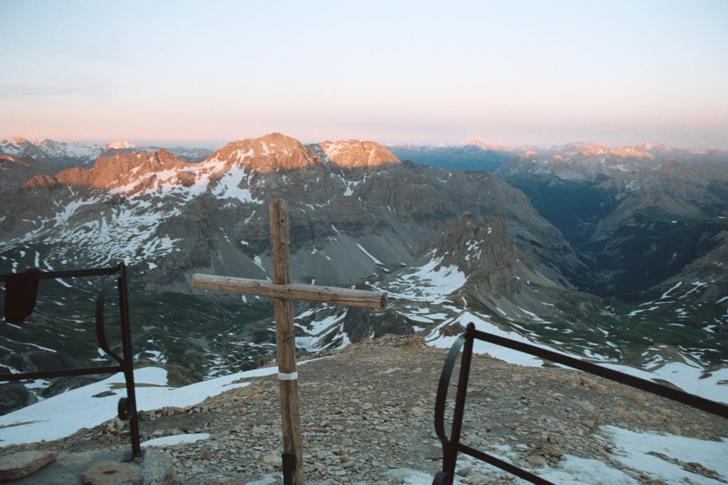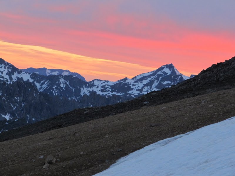 Mont Thabor jest najwyższą górą w okolicy i nic nie ograniczało nam widoków. Na wszystkie strony ciągnęły się ośnieżone góry. Słońce podnosiło się, w końcu oświetlając tylko wierzchołki najwyższych z nich. Rozpoznawałam kilka- Barre d’Ecrins, Monte Viso, Bric Froid, Pic de Font Sancte… Miejsca gdzie już kiedyś byłam i mnóstwo takich gdzie jeszcze kiedyś będę :)