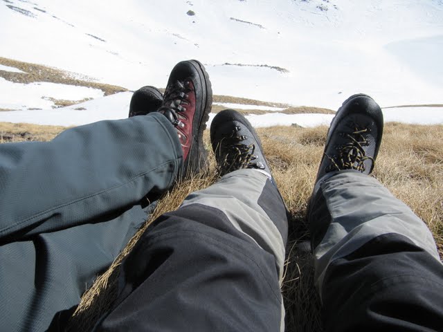 Przekonani, że trudności mamy już za sobą usiedliśmy sobie na stoku, wyjęliśmy zapasy. Słońce grzało prawie jak na plaży. Po prostu bajka.
