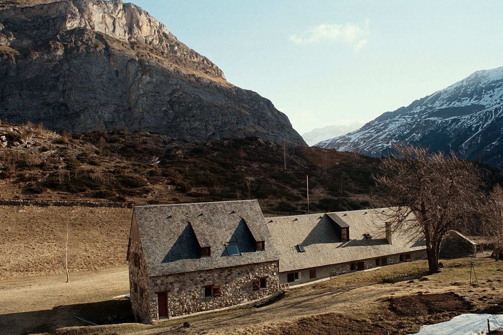Schronisko w Bujaruelo, które pierwszy raz w życiu widziałam puste (zwykle jest tam okropny tłok), było otwarte. Dostaliśmy łóżka w wielkiej zbiorowej sali, nawet nie podejrzewałam, że taka tam jest -San Nicolas de Bujaruelo to w zasadzie gospoda (auberge), pokoje z łazienkami, restauracja. Piętro niżej przy obstawionym kanapami holu jest świetne miejsce kominkowe i kuchnia. Było nawet drewno. Dla nas dwojga- po prostu pałac. Była sobota i w restauracji kręciło się kilka innych osób, ale trzymali się części hotelowej.