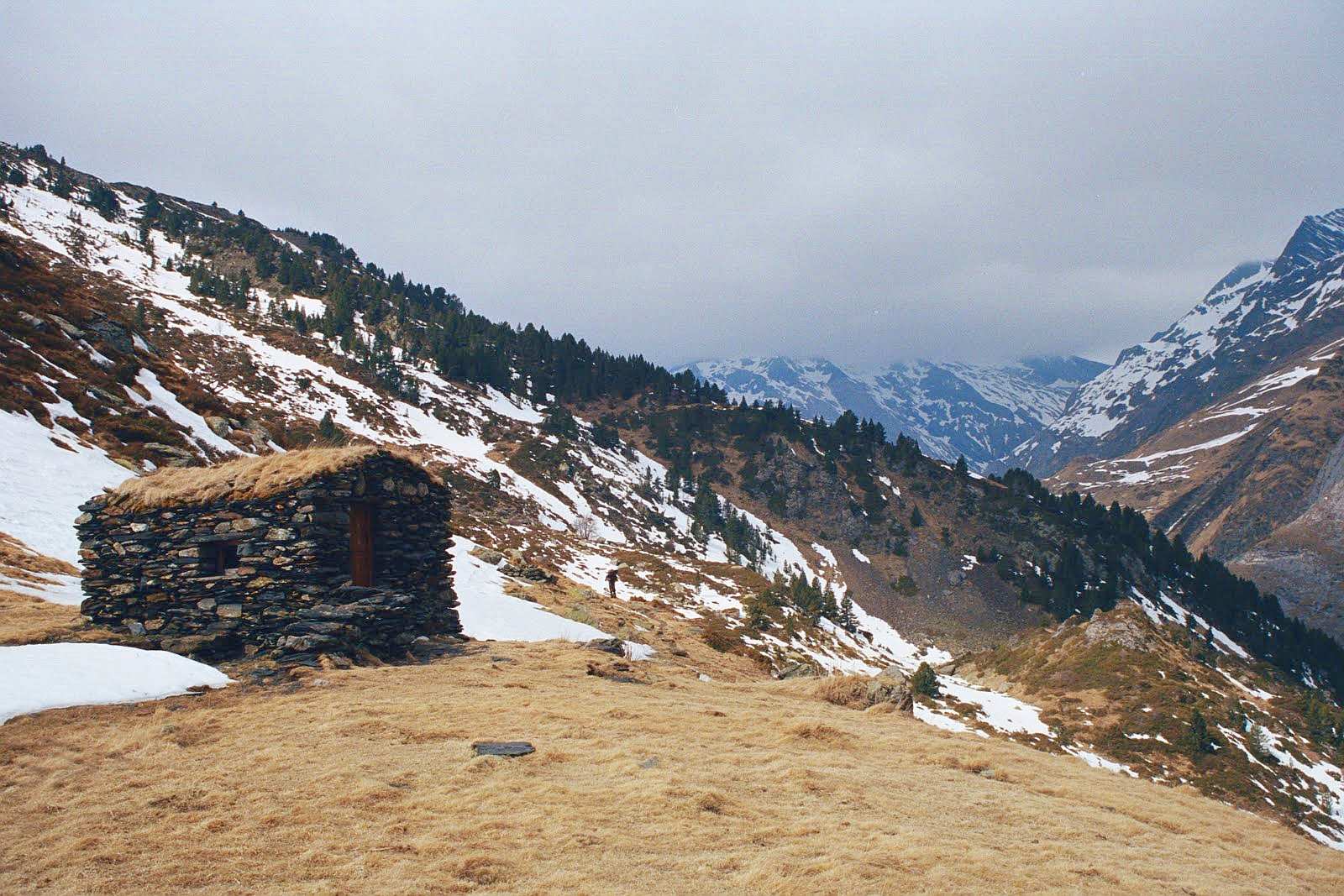 Początkowo było wiosennie i ciepło. Wiało, ale do tego zdążyliśmy się już przyzwyczaić. Przy malowniczej, zbudowanej z luźnych kamieni cabanie minęła nas grupa Francuzów z rakietami. Skręcili w bok.