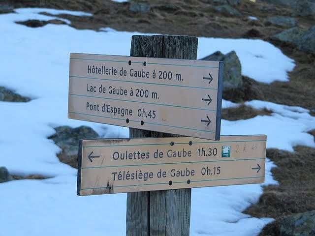 Szlak, pomimo tego że oznakowany (doliną Jeret biegnie odcinek GR10) był zamknięty. Wejście zagrodzono, a wskazujący Cauterets drogowskaz był odwrócony. Przeleźliśmy przez płot i zaskoczeni przeczytaliśmy wszystko wyjaśniającą informację: „Ścieżka niebezpieczna dozwolona tylko dla doświadczonych górołazów” (tu nasze polskie, niezgrabne słowo turysta zupełnie nie pasuje:)) .