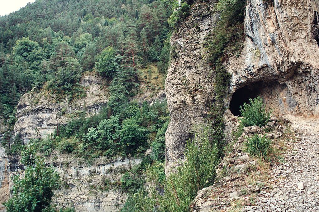 Są dwa w miarę widne tunele i jedno przykre urwisko. Na tym kawałku zbocze (ze ścieżką) opadło i osypisko trzeba obchodzić. Są dwa ubezpieczone łańcuchami miejsca. Krótkie więc sądzę, że da się tamtędy przewlec rower, ale na pewno nie będzie to łatwe (ja bym zabrała pętlę z karabinkiem- do umocowania roweru do ubezpieczeń, w razie gdyby zabrakło wolnych rąk).