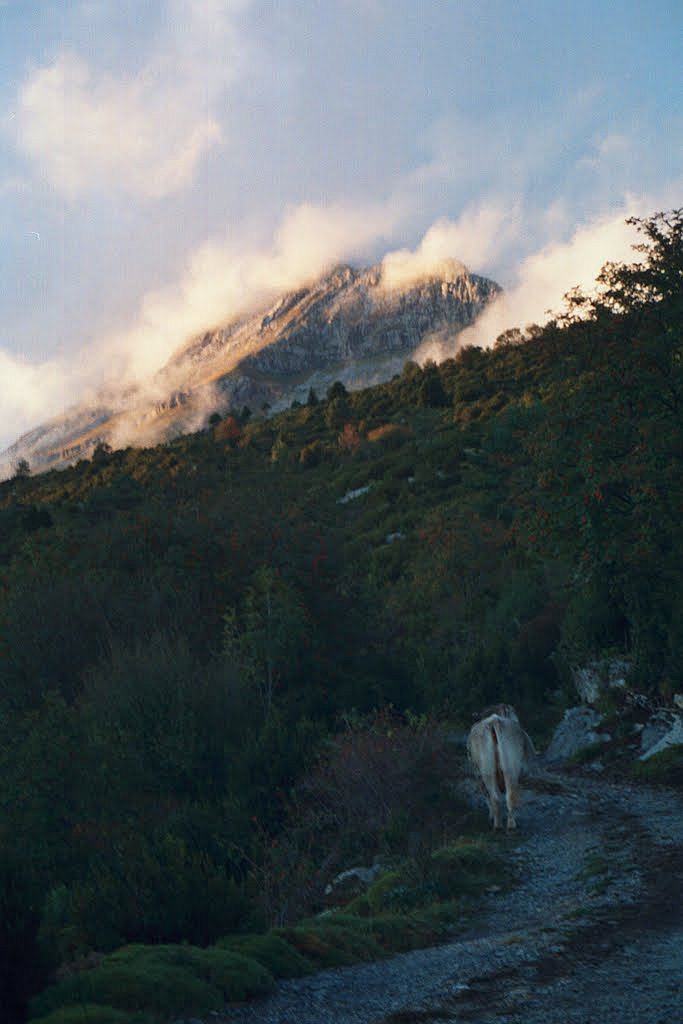 GR19 przecina co jakiś czas drogę i kiedy przedarłam się na szutrówkę przez gąszcz kolcolistów (nadal niekompletnie ubrana) niespodziewanie wyjechał mi przed nos samochód. Panowie pasterze (o bardzo czerwonych nosach) niezmiernie się zainteresowali dokąd idę, co nawet zaczęło mnie martwić, ale powiedzieli mi gdzie jest woda, pokazali też gdzie odchodzi moja jutrzejsza ścieżka. Miałam zamiar dokończyć zwiedzanie pirenejskich cyrków. Droga wprawdzie pojawiała się po kawałku na każdej z moich map, ale poskładałam te kawałki jak umiałam i uznałam, że dam radę.