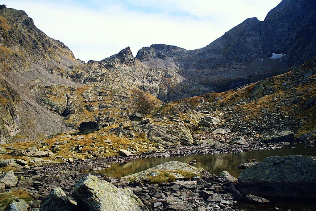 Wyszliśmy na przełącz pod Pic Hourgade, gdzie jak to w Pirenejach ukryło się i jeziorko i staw. Podobno można stąd łatwo wejść na szczyt. Nie spróbowaliśmy, bo było już za późno.