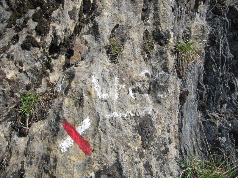 Można tam się wspiąć po trawkach- to tylko kawałek, albo przejść częściowo oberwanym skalistym trawersem. Wybraliśmy trawki.