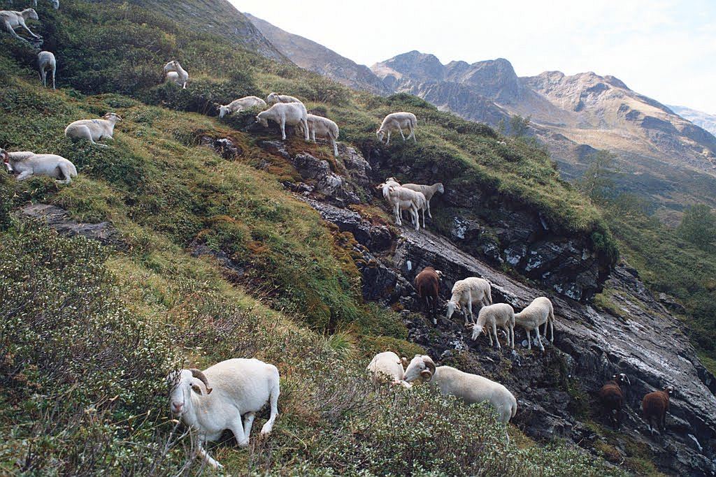Ścieżka nad lac Nere odchodzi od GR-u znacznie wyżej niż przypuszczałam. Już się bałam, że jej nie znajdziemy, ale zauważyłam na zboczu stado owiec. To właśnie ich trasę na wyższe piętra doliny oznakowano (jest strzałka na kamieniu z napisem „lacs” i kopczyk).