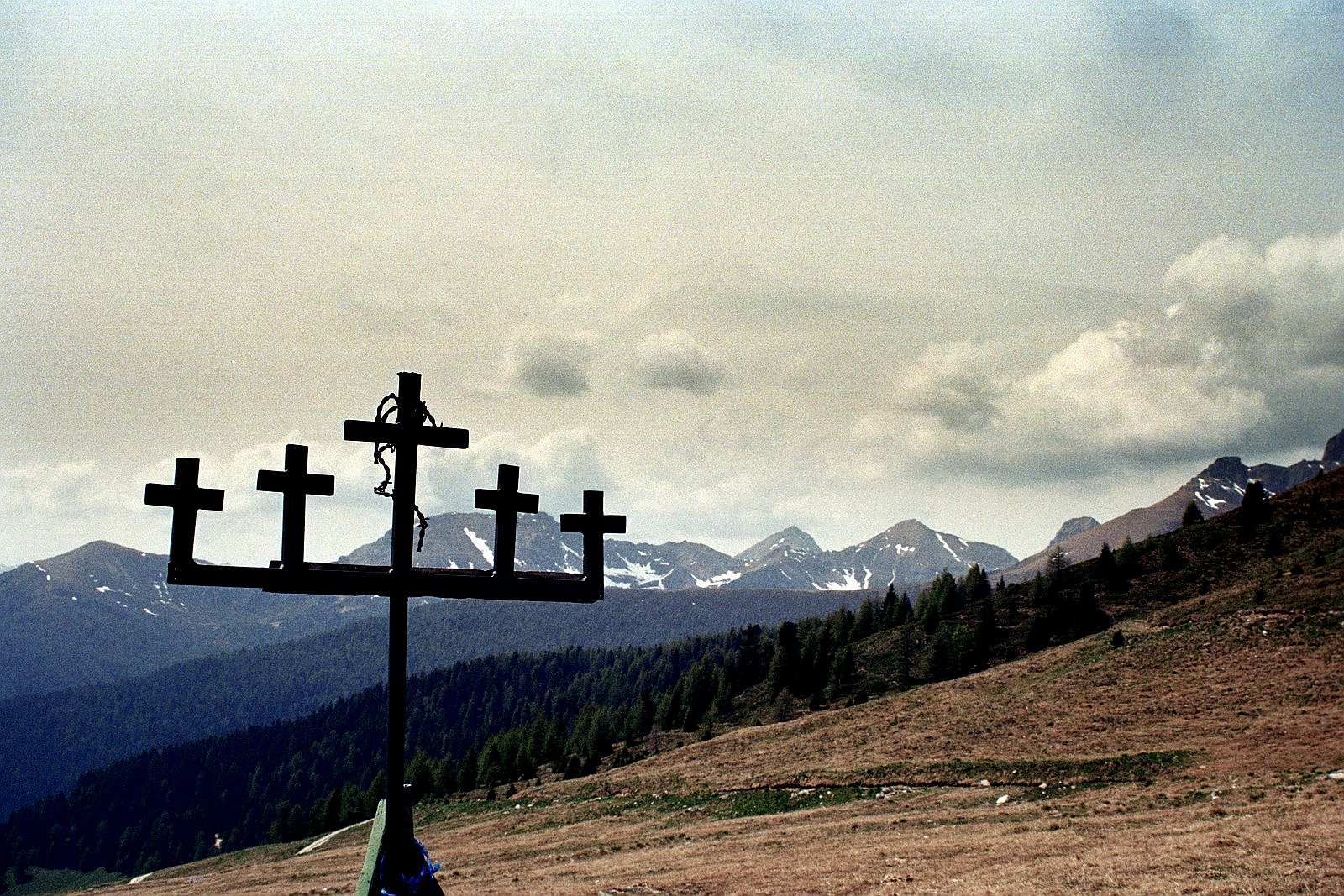 Paso Cinque Croci oddziela Cima d’Asta od sąsiedniego masywu Lagorai Na przełęczy jest pasterski dom, gdzie można by awaryjnie przenocować. Nie jest chyba oficjalnym biwakiem, w każdym razie – nie takim zaznaczonym na mapie, ale był otwarty, kiedy tamtędy przechodziłam.
