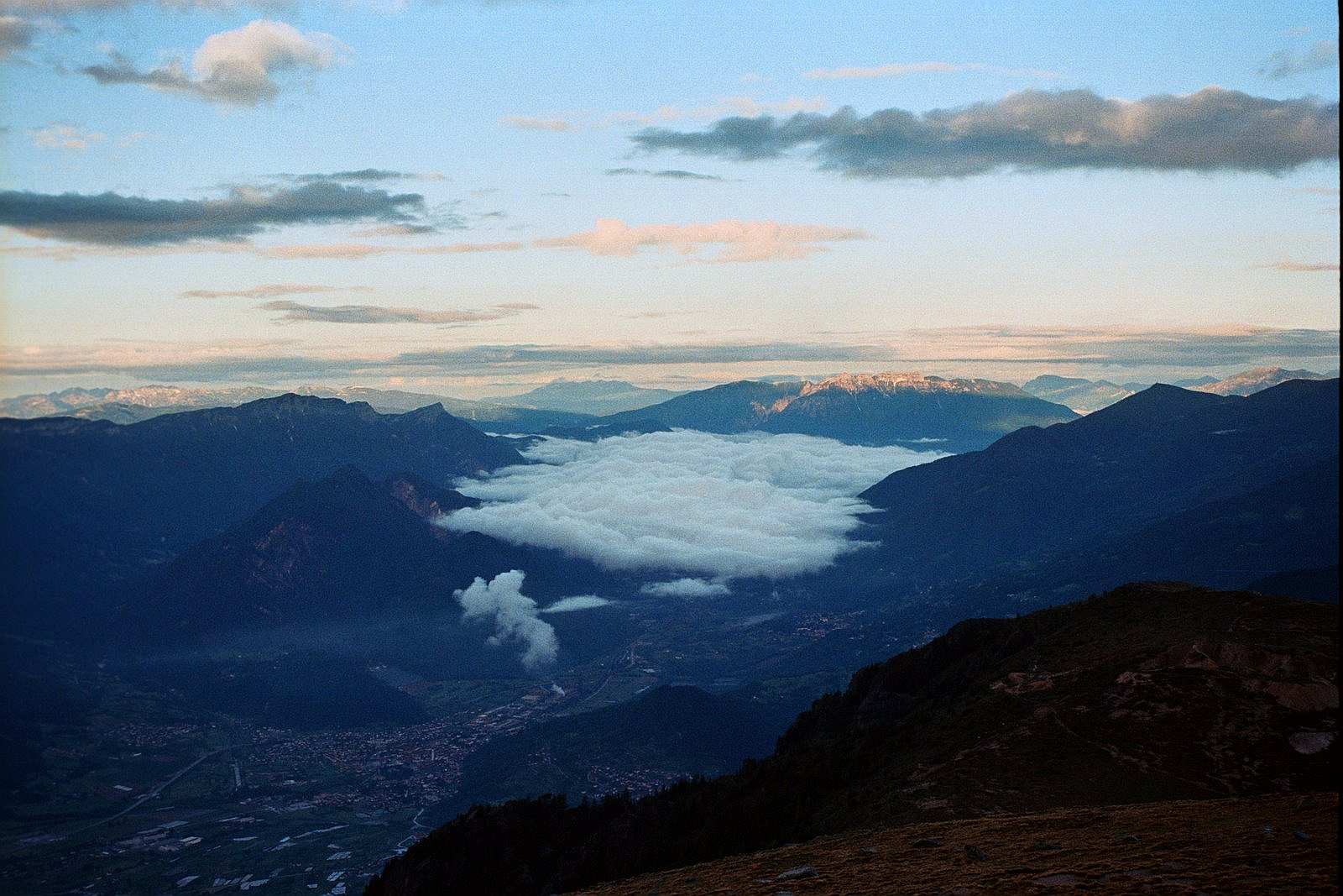 Jednak prawdziwe piękne widoki pokazały się dopiero na górze. Wieczorem chmury rozwiały się i z potwornie zimnego biwaku Argentina ( było -2 stopnie, na ścianie wisiał termometr) , mogłam długo przyglądać się chmurom, otulającym położone 1500 metrów niżej doliny.
