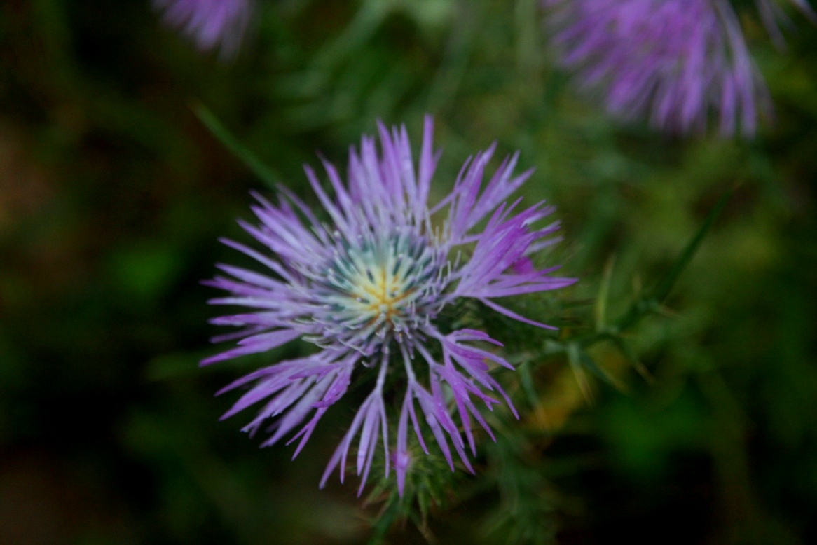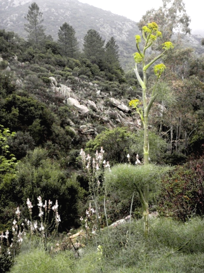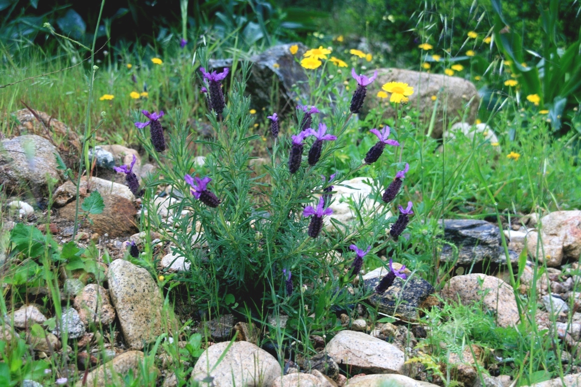 W dolinie rzeczki  kopry i asphodele wystawały z gęstych zarośli poprzerastanych żarnowcami czystków.  Co jakiś czas pojawiał się ogromny krzaczasty wilczomlecz, a pomiędzy białymi czystkami trafiał się pojedynczy fioletowy. Żarnowce miały już pąki, ale jeszcze nie kwitły. Wszystko wokół ociekało wodą.