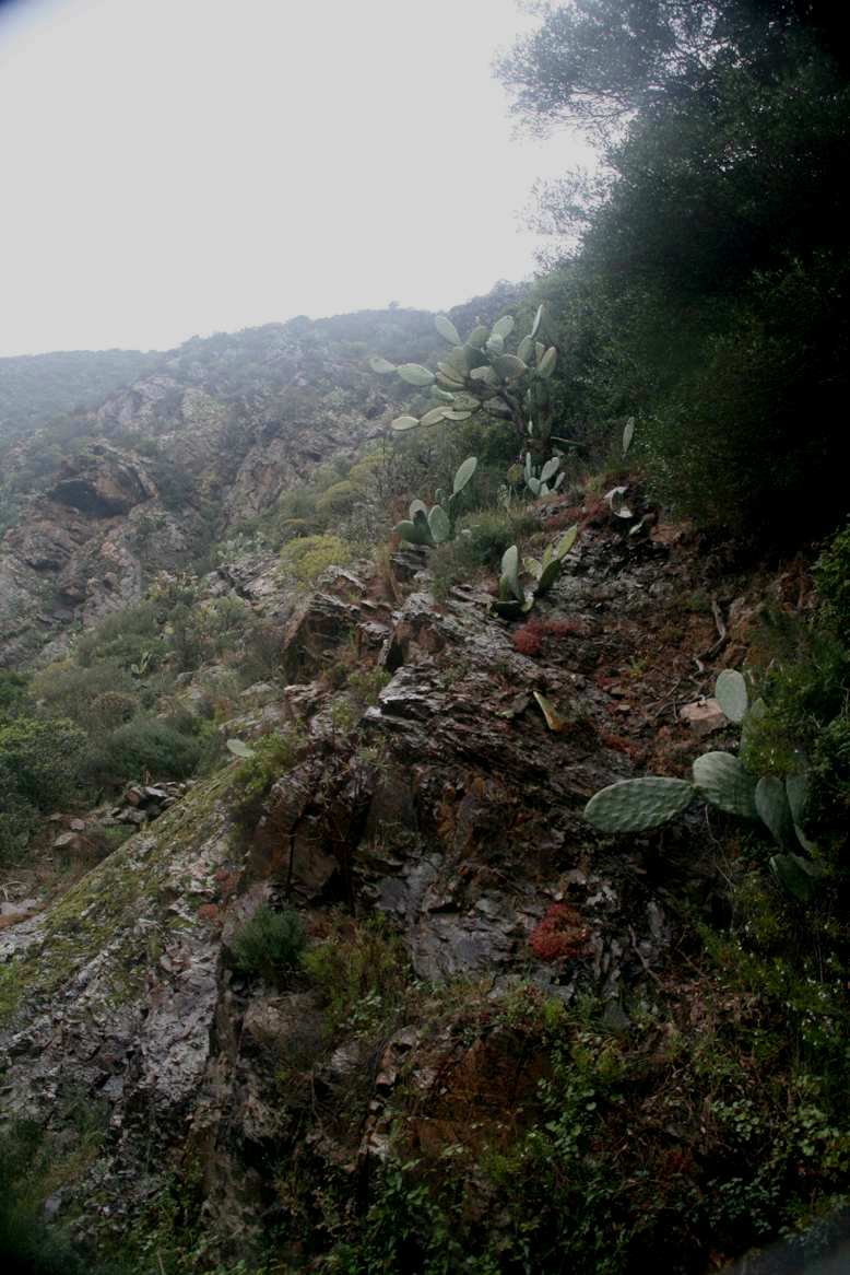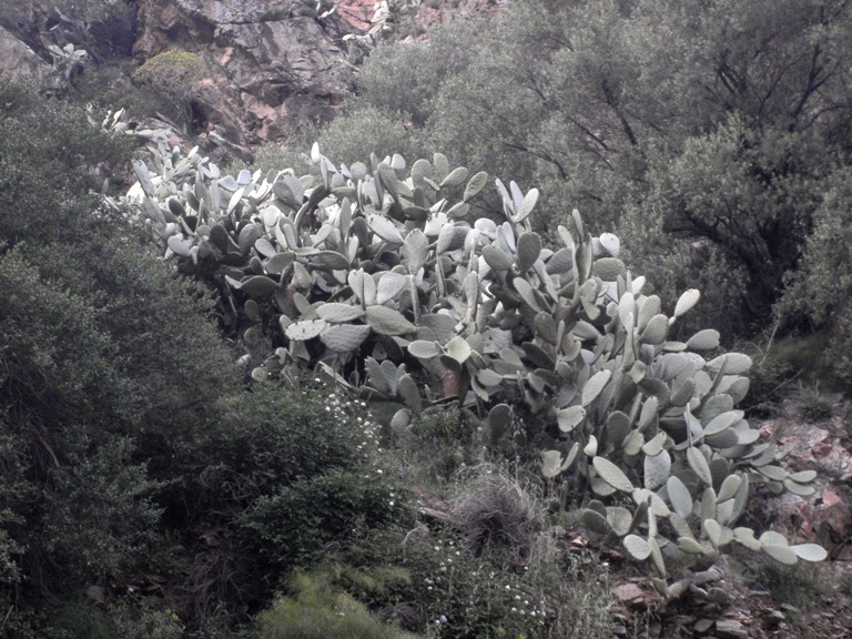 Zbocze nad nami  gęsto porastały opuncje, ale na szczęście nie trzeba się było przez nie przedzierać. Do wejścia do kanionu można się dostać polną drogą.
