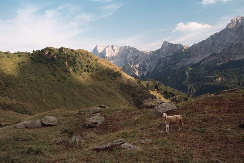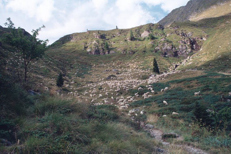 Chwilkę później nadjechali konno pasterze, a my pomogłyśmy zagonić kilka owiec. Niechcący (bo na pasieniu się ani trochę nie znamy) postraszyłyśmy owcę, która właśnie urodziła jagnię. Dopiero po chwili zauważyłyśmy leżące tuż obok łożysko. Na szczęście owca potupała na nas i nafukała. Jagnię chyba nie dałoby rady dalej iść. Chwilę później odkryłyśmy, że świeżo urodzonych osesków jest w tej okolicy więcej. Odeszłyśmy nie niepokojąc już ich.