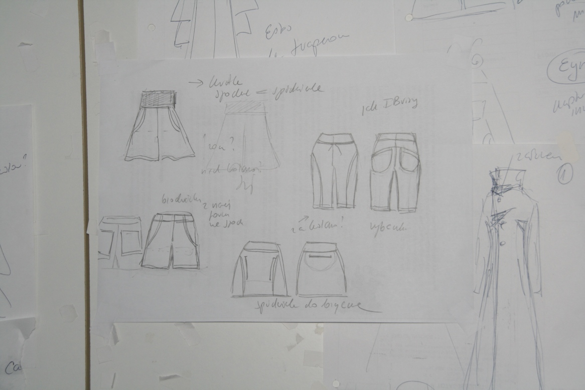 PS: trochę inaczej robi się całe kolekcje dla dużych produkujących masowo firm, ale takie zdarzaja mi się już tylko na czyjeś zlecenie. Postanowiłam nie robić ich nawet w modzie. Wydaje mi się, że mają coraz mniejszy sens- a nawet, że jedynym sensem projektowania ubrań i jedynym powodem żeby wciąż powstawały nowe są bardzo konkretne potrzeby bardzo konkretnych ludzi. Jeśli modę można w ogóle uznać za sztukę, nie tworzy jej przecież sam projektant- nie zaistniałaby gdyby nikt jej nie nosił.