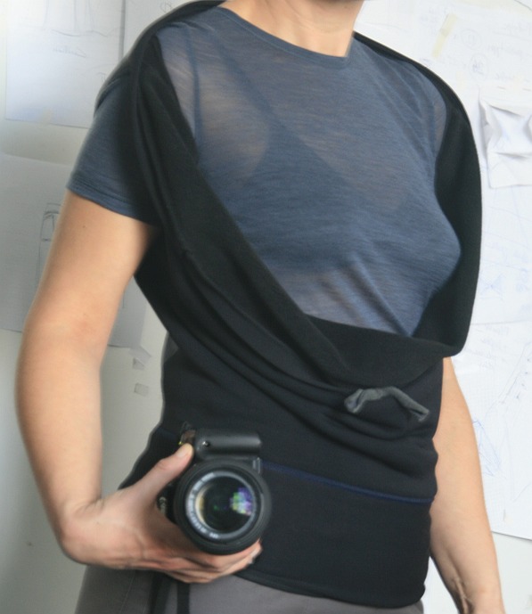 Pod paskiem jest ukryta kieszonka. Z wełnianą damską bluzką wygląda to tak: