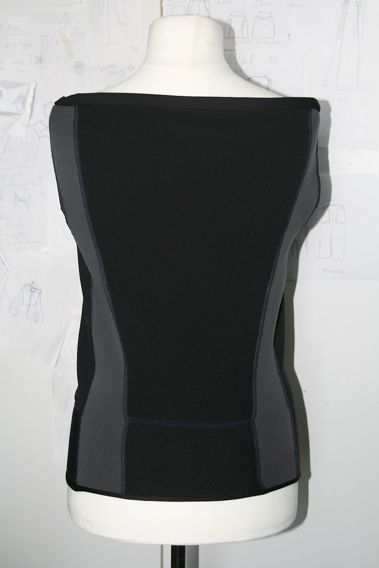 Po odwróceniu do góry nogami ( hmm..) spódniczka przeistacza się w zgrabną kamizelkę. Do wyboru z dużym dekoltem, albo całkiem bez.