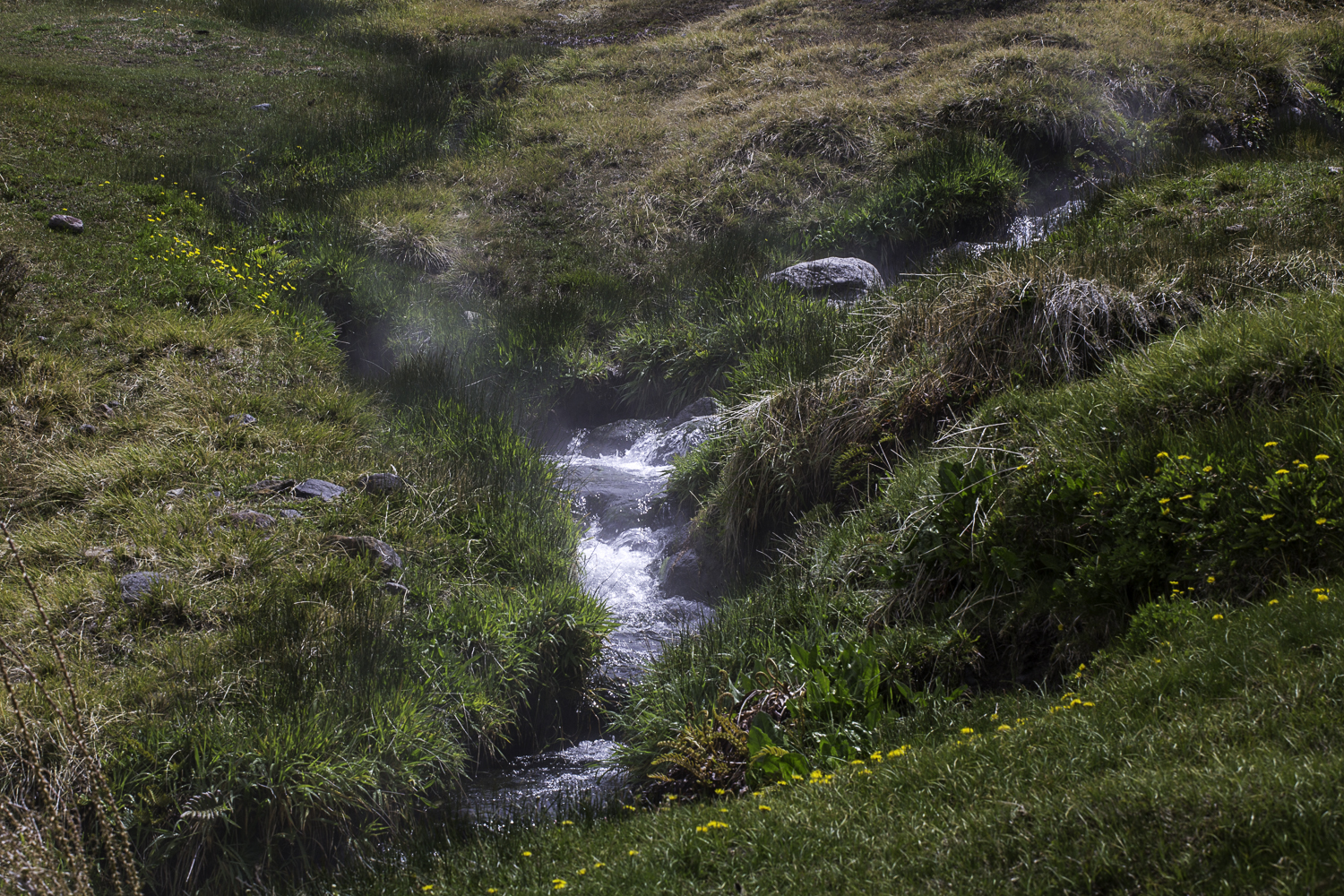 Za pomnikiem nasza droga jest coraz cieńsza ślady kół blakną po każdym brodzie. Idziemy stokiem zielonej doliny. W łachach piachu kwitną złote storczyki. Widzę je odkąd wyruszyliśmy i nadal nie przestaje mnie dziwić, że rosną w piachu.