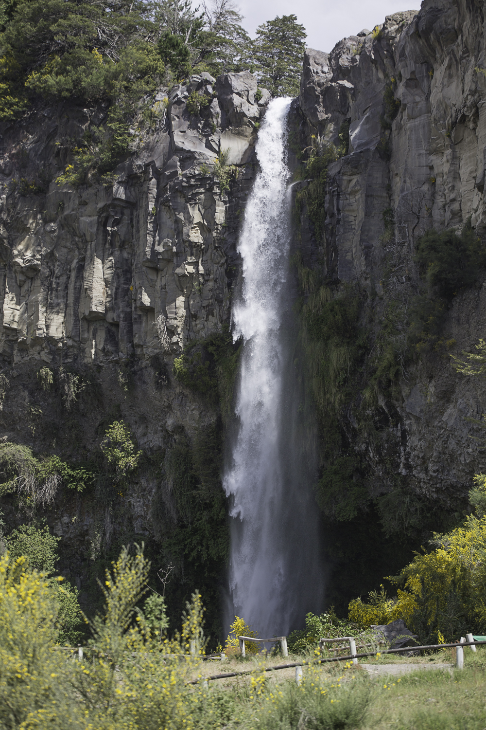 W dolinie stoi jeden dom, za nim droga staje się konną ścieżką, nad rzeką rozwidla się i blednie. Na grani niemal jej nie widzimy. Mapa sugeruje dwa warianty i jak to bywa z mapy.cz jest mętna. Szlak na prawo zaznaczono ciągłą linią, jakby to on był główny (czyli łatwiejszy), ale bardziej wydeptany jest ten prosto w dół. Wierzę mapie i próbujemy ścieżki po zboczu. Szybko robi się tam bardzo stromo, za żlebem wyrwanym dosłownie przed chwilą, trudnym do przejścia szlak trawersuje ciąg śliskich skał na ciemnej wilgotnej stromiźnie. Poddajemy się zdecydowanie za późno. Rozczarowani wracamy do dna doliny. Na tym szlaku trafiają się końskie kupy i to nas podnosi na duchu. Na grzbiecie rośnie pojedyncza araukaria. Pierwsza jaką widzimy w Chile. Tu właśnie na przełęczy Trapa Trapa biegnie północna granica jej występowania. Drzewo jest piękne, samotne ponad łysą doliną wygląda jak pomnik zwycięstwa. Jak symbol wolności. Nie wiem skąd to wrażenie, ale oglądam się i znów podziwiam.