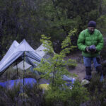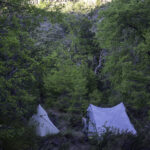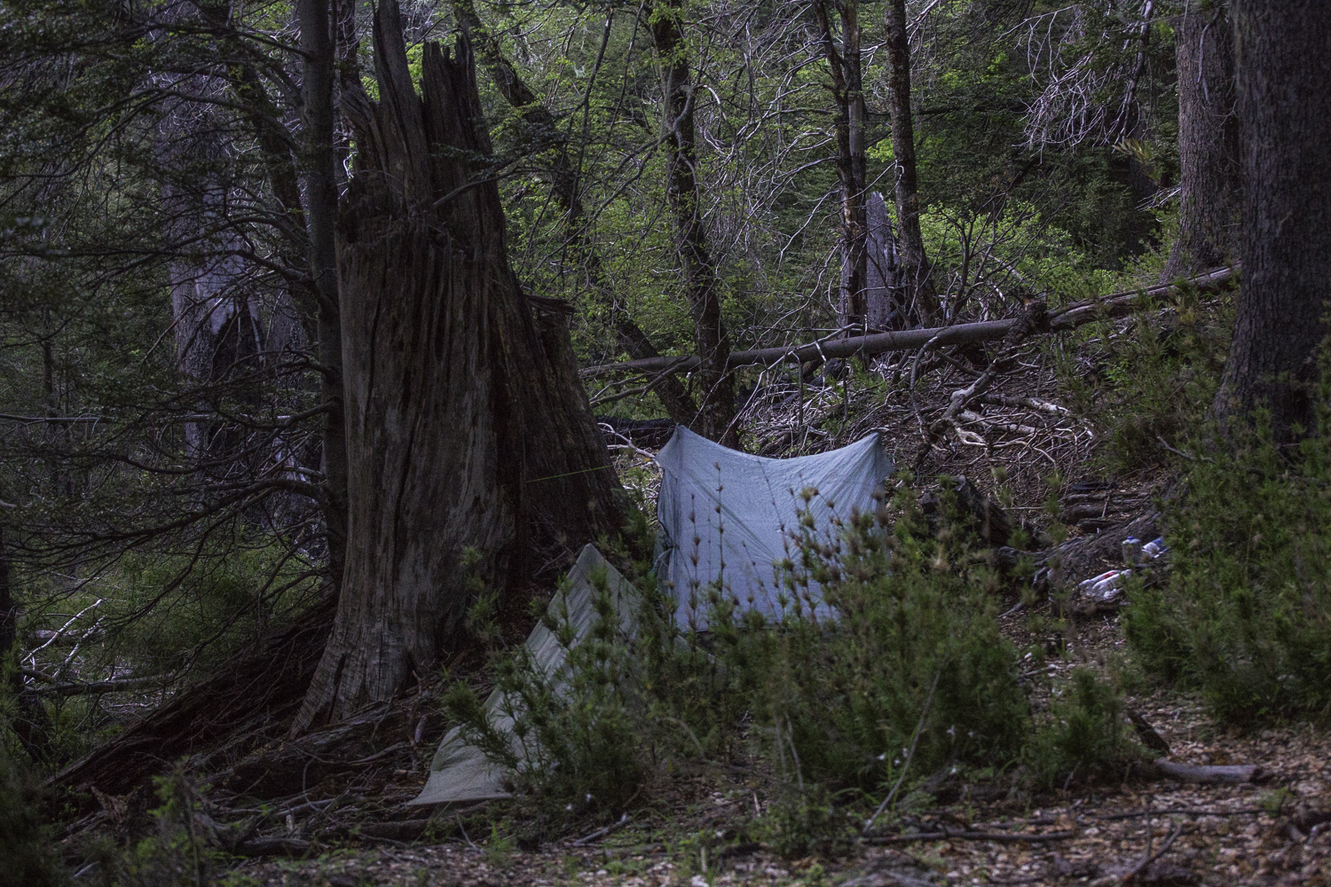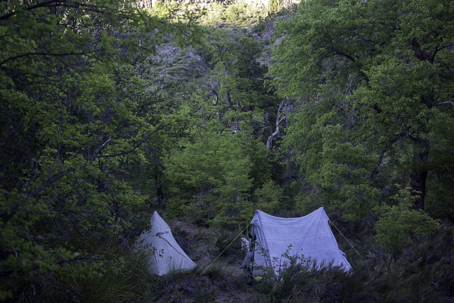 Czym wyżej tym mniej końskich śladów, tym więcej zbutwiałego drewna, nieprzechodnich zarośli bambusów. Las pachnie próchnem, trudno o wodę do picia, zbliża się zmierzch. Z trudem znajdujemy miejsce na biwak. Tylko jeden namiot mieści się na prawie płaskim. To nie ziemia, to zwalone, już rozłożone drzewo. Drugi, rozpięty na uskoku przydaje się tylko jako szafka na plecaki. Śpię u Jose. Podoba mi się jego nowy namiot.