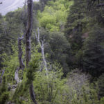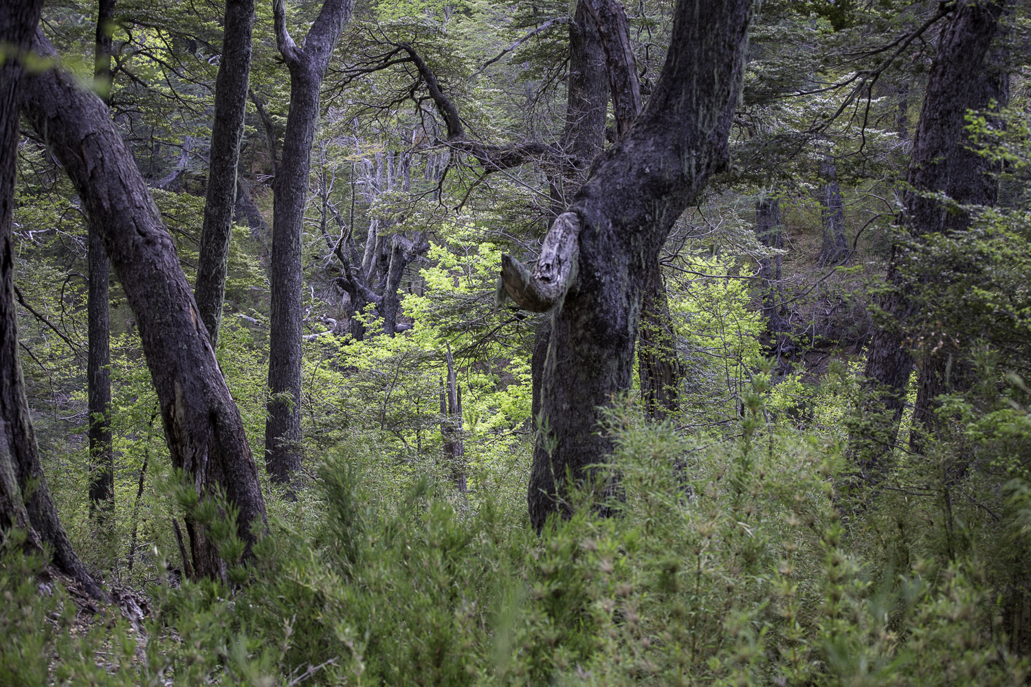 Schodzimy dalej. Wyglądam w każdym miejscu gdzie się da. Staję kiedy mijamy rozgałęzienia na mapie. To nie zawsze się musi zgadzać, rzeki są żywe, ale na pewno warto sprawdzić czy to nie tu. Las jest gęsty, pomimo tego wydaje mi się, że widzę ścieżkę, że ktoś czy coś już kiedyś tędy przeszło i rzeczywiście docieramy nad podzielony nurt. Widać tylko dwie pierwsze odnogi. Są paskudne. Nie robę zdjęć, przełączam się w tryb bojowy. Wszystkie inne sprawy poza rzeką zsuwają się na dalszy plan. Gdzieś w tle widzę fragmenty mapy, jeśli przejdziemy może uda się pokonać wąski potok (wodospad który widzieliśmy na brodem) i wrócić do szlaku GPT, lub gdyby się nie udało pójść w dół Rio Nuble aż do połączenia z Rio Zorra, a tam chyba powinien być most. Żałuję, że go nie wypatrzyłam z drogi, że nie przyjrzałam się czy nie jest zerwany.