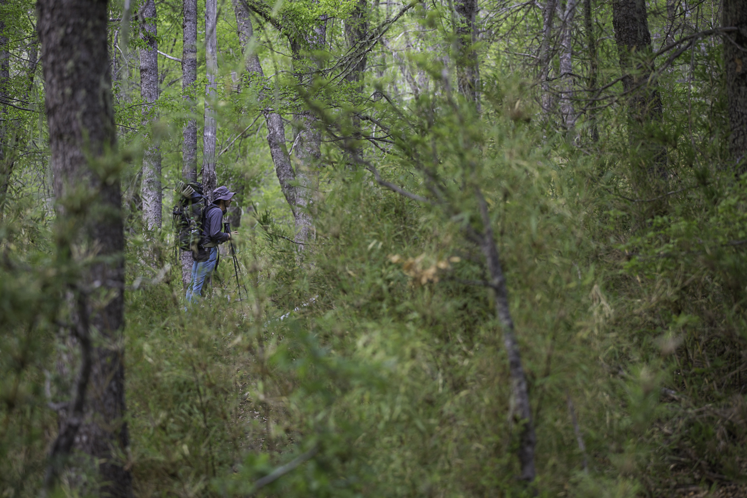 Leśna droga jest pogrążona w zimnym cieniu. Rzeka pojawia się w całej okazałości tylko raz, Jose wchodzi nawet do wody, ale jest zbyt głęboko. Z rwącym nurtem walczy rodzina kaczek. Patrzymy jak przedzierają się z jednego kamienia na drugi, a potem z trudem, spychane przez nurt kryją się w zalanych chaszczach na drugim brzegu. Być może one mogły przelecieć, my nie możemy.