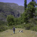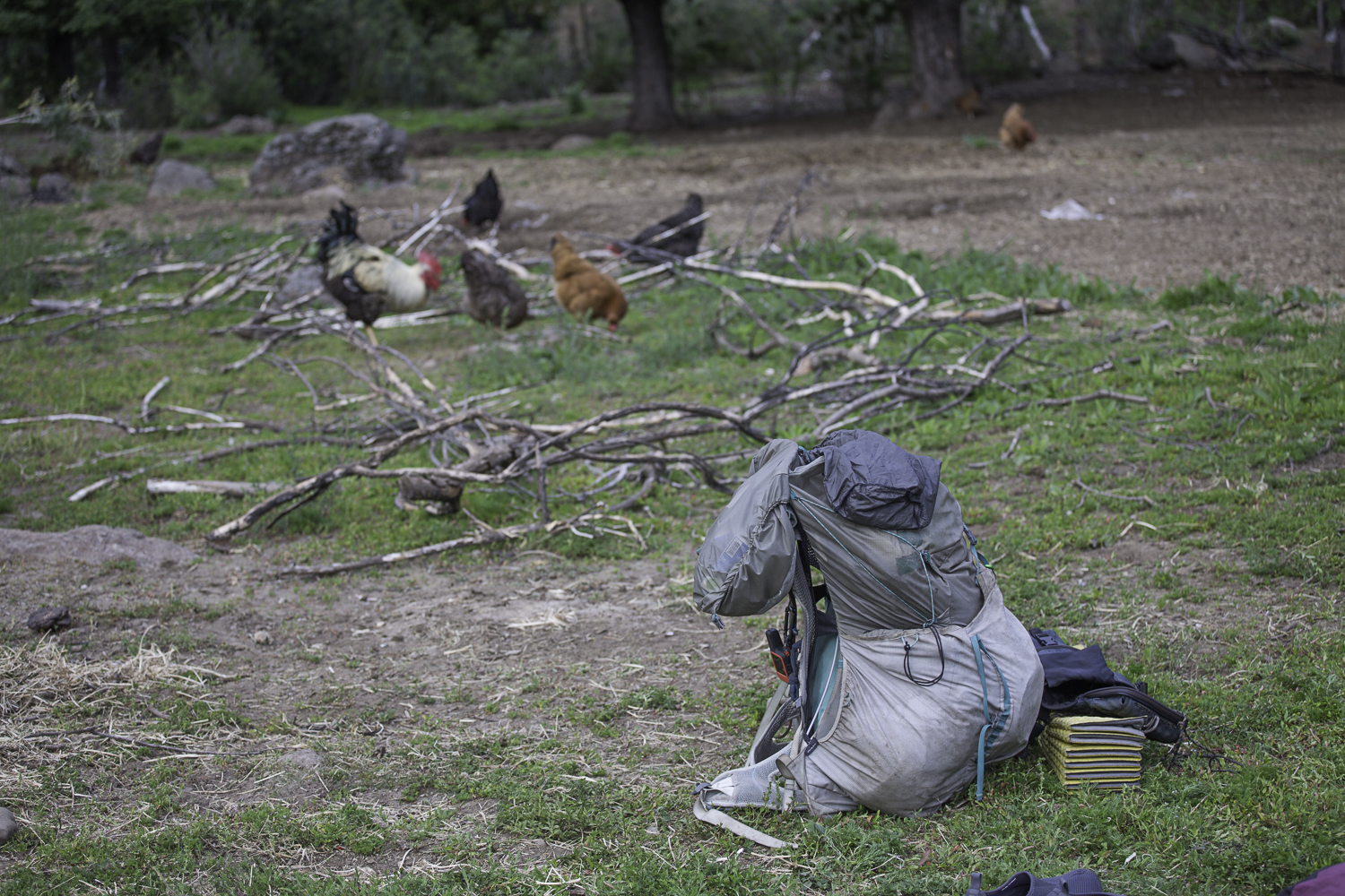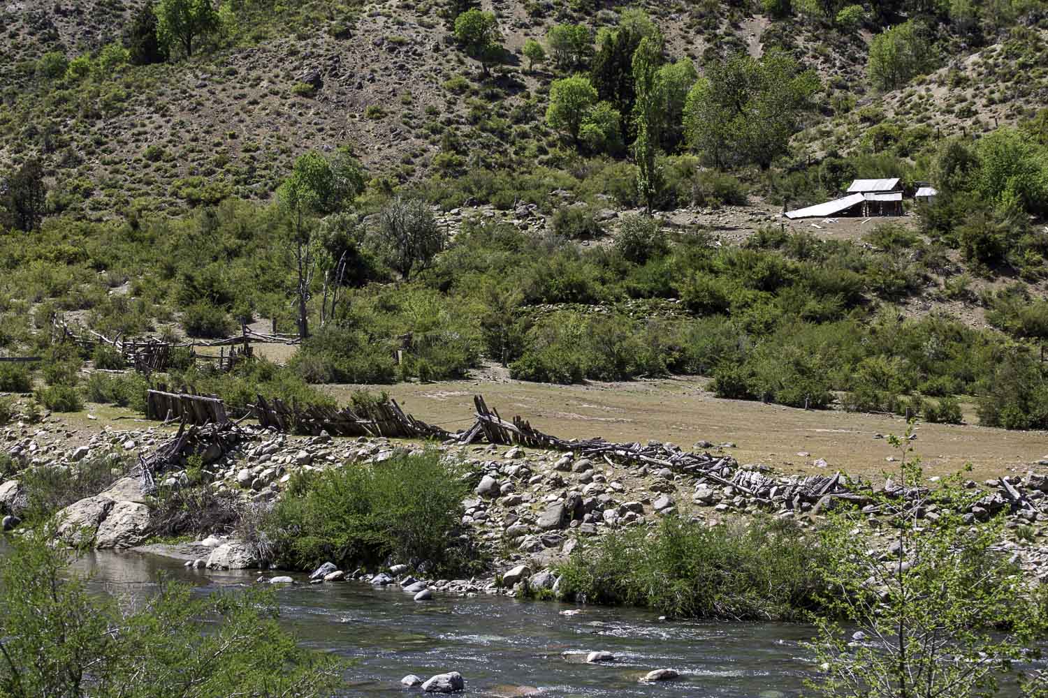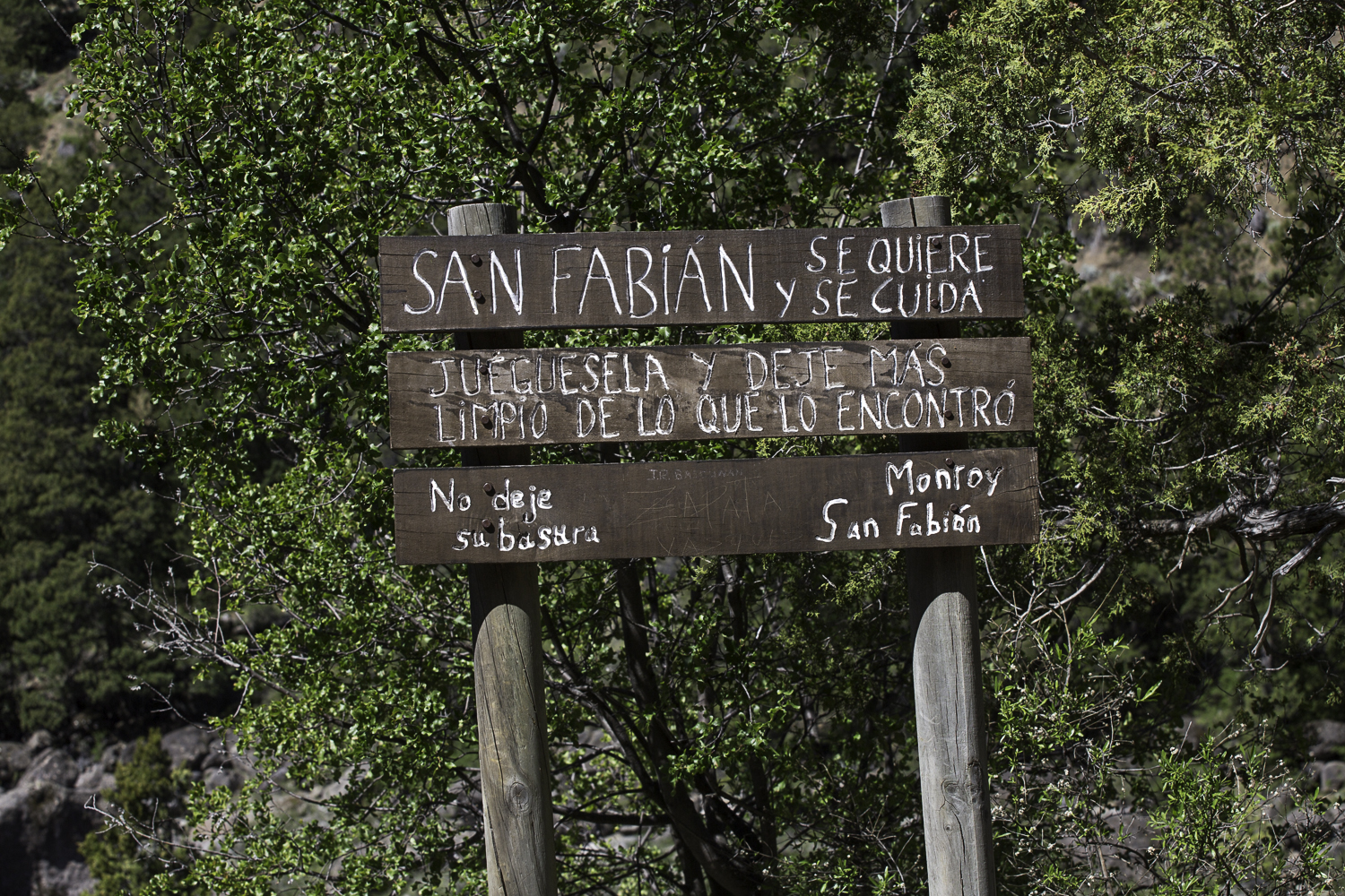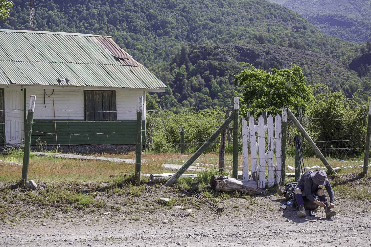 Kilometr dalej trafiamy na zamieszkałą osadę. Wokół domku kręcą się kury, po łąkach łażą konie i krowy na stoku widzę stado owiec i kilka biegających wolno świń. Na płocie kartka- „nie zawracać mi głowy z żadnego powodu!” „Żadnego” jest podkreślone. Pomimo tego wołamy Buenos Dias. Z domu wynurza się mężczyzna w szortach i klapkach. Jose tłumaczy się bardzo grzecznie. Długo gadają, niczego nie rozumiem. Mężczyzna wskazuje w górę w stronę Rio La Minias, niepotrzebnie wtrącam się, że nie tam. Chcemy spróbować przekroczyć wąski potok. -Estero el Quebrado dukam. -A to proszę bardzo- mówi mężczyzna i znika.
