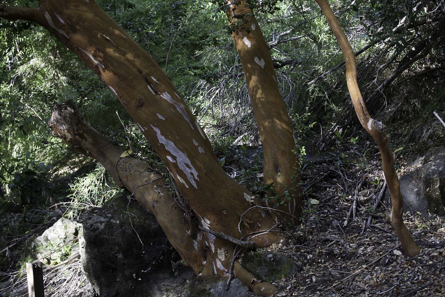 Ścieżka wznosi się gęstym lasem, czasem ją widać, ale są też rozgałęzienia, a na mapie nie ma zupełnie nic. Bez śladu w nawigacji czuję się ślepa, jak łatwo się uzależnić od techniki…
