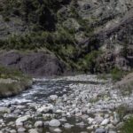 Nasze buty do przechodzenia rzek są ażurowe, podeszwa cienka czuję każdy kamień. Woda lodowata, szybko sięga do połowy ud, w najgłębszym miejscu niemal do kroku. Druga odnoga jest bardzo podobna, do trzeciej musimy kawałek iść. Rzeka wbiła się tuż pod skarpę na brzegu. Schodzimy troszkę, bo przecież trzeba na ten brzeg jakoś wyjść. Oddycham z ulgą ociekając. Na trawkach rysuje się stary ślad krów, prowadzi do płotu. Jose otwiera bramkę i padamy na rozgrzanych skałach. Wywieszam zamoczone ubrania, obcieka skraj spódnicy i skarpety, które zostawiłam z nadzieją, że tak będzie cieplej. Rozwieszamy też wilgotne po nocy namioty. Słońce praży i za moment wszystko jest suche. Ruszamy w górę wyraźną wydeptaną ścieżką. Gubimy ją tylko raz w kamienistym brodzie, też niełatwym. Rio Las Minas płynie spod trzytysięczników, nic dziwnego, że jest mocno wezbrana. Susząc stopy zerkam na mapę, nasz szlak przecina tę rzekę jeszcze raz, dużo wyżej. „Może dałoby się pójść wzdłuż nurtu już stąd?” przesuwam powiększenie i znajduję ciąg wodospadów. Stromy próg. szkoda.