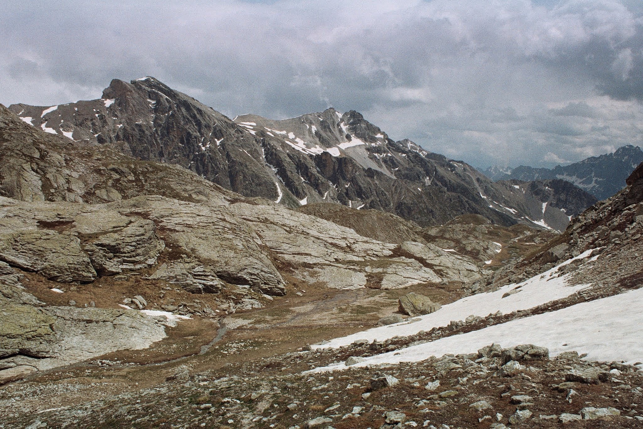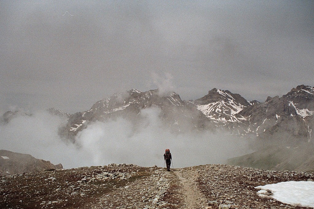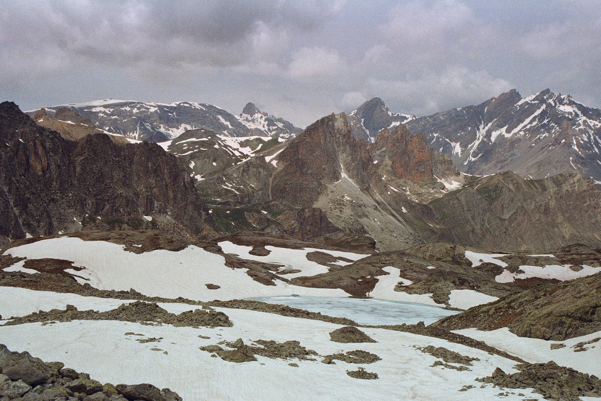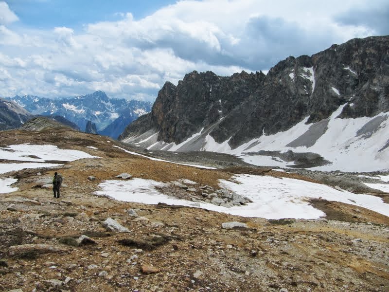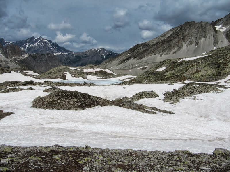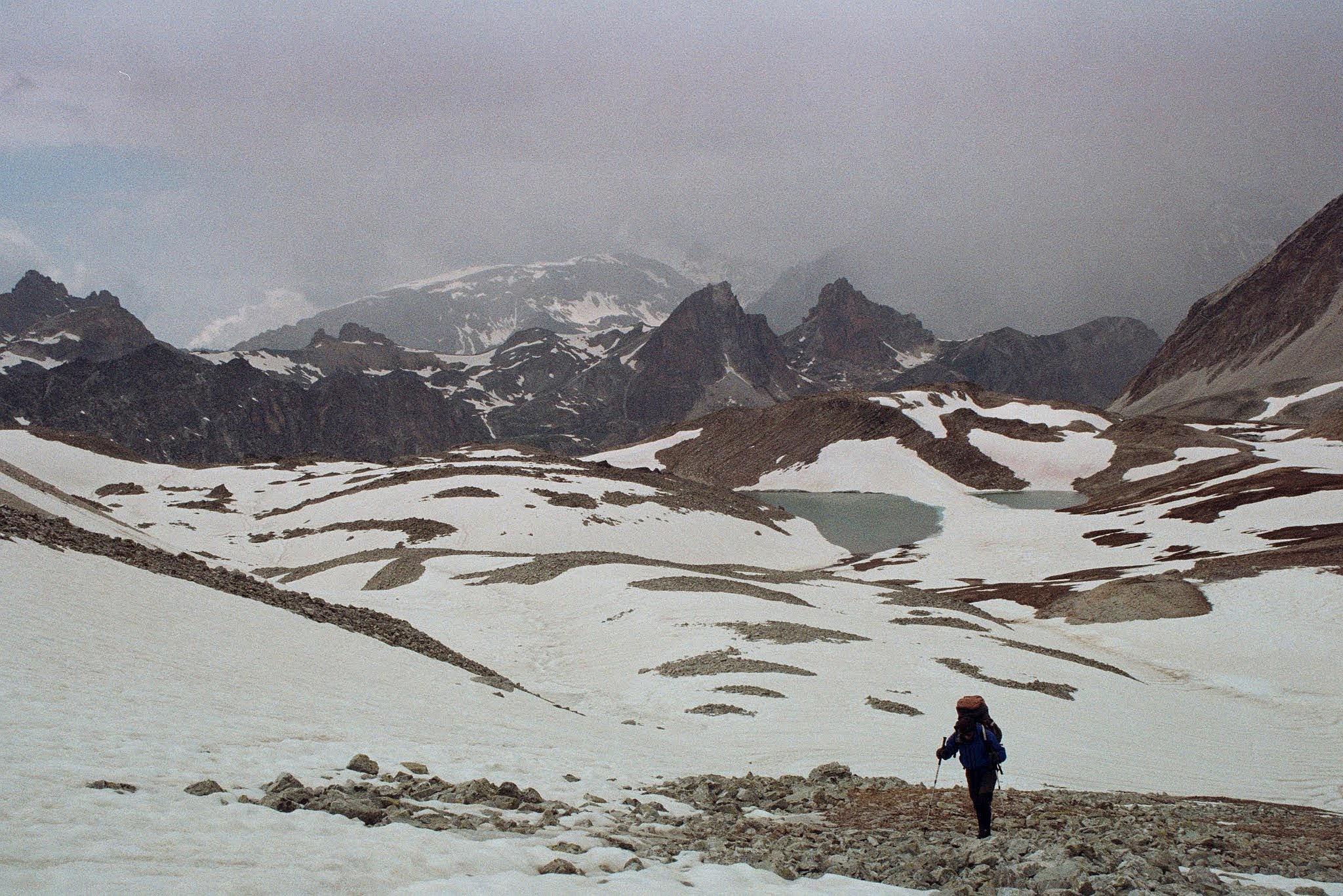Nam wydało się zbyt szybkie i zbyt proste. Wdrapaliśmy się na Col de Marinet, do której można też było dojść podchodząc znad jeziorek, ale przejście stamtąd do włoskiego biwaku Barenghi (sensownego miejsca na deszczową noc) wyglądało na bardzo trudne. Kopny śnieg, stromo i do tego ścigał nas chyba nieunikniony deszcz.