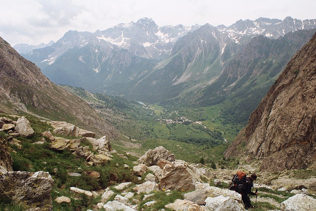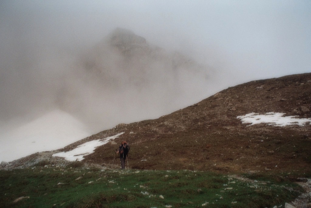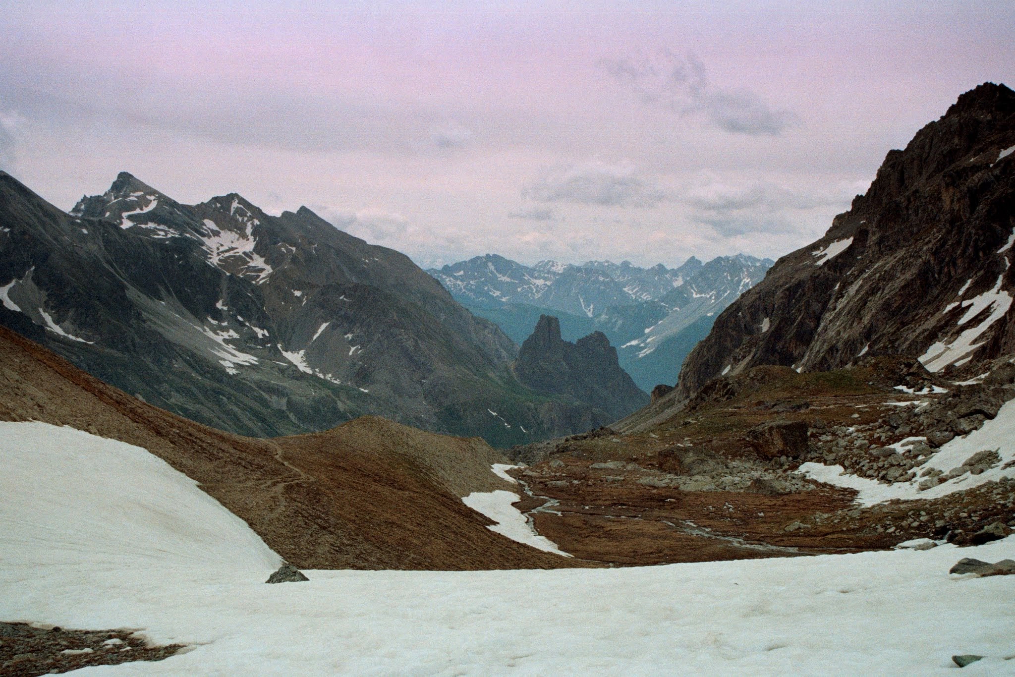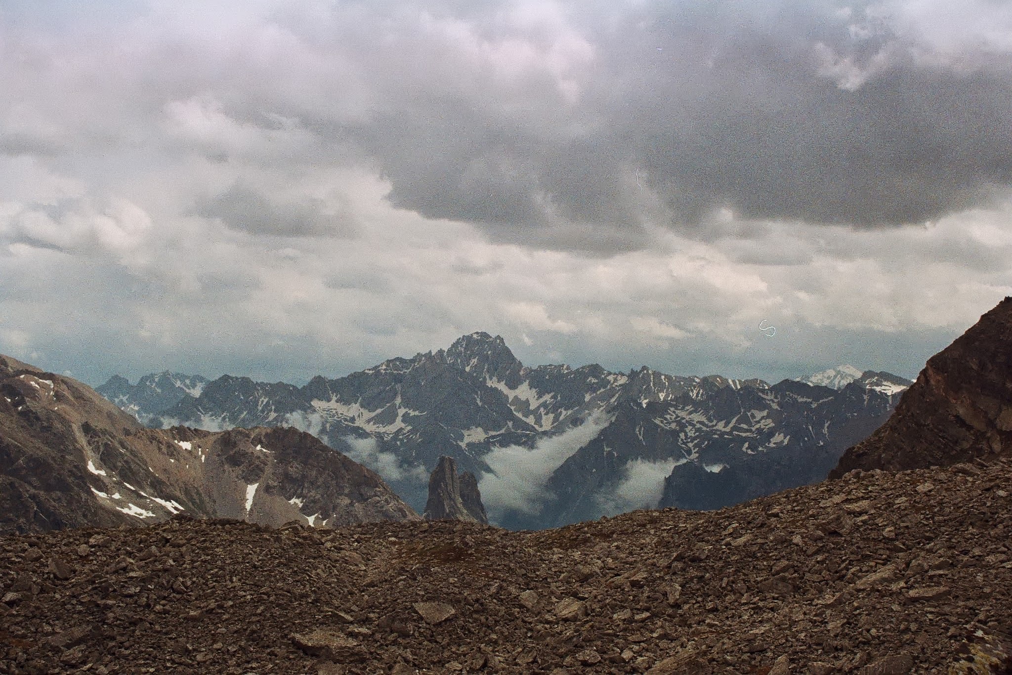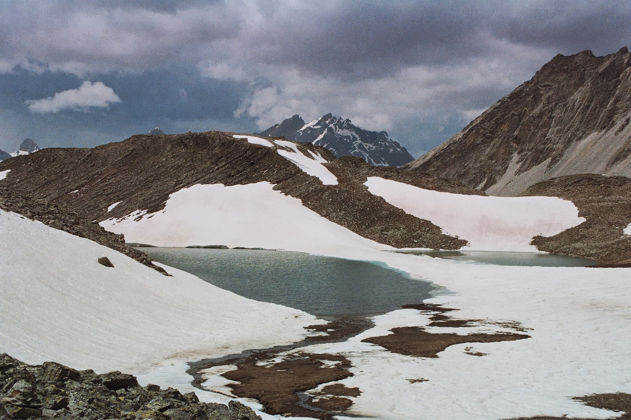 Nam wydało się zbyt szybkie i zbyt proste. Wdrapaliśmy się na Col de Marinet, do której można też było dojść podchodząc znad jeziorek, ale przejście stamtąd do włoskiego biwaku Barenghi (sensownego miejsca na deszczową noc) wyglądało na bardzo trudne. Kopny śnieg, stromo i do tego ścigał nas chyba nieunikniony deszcz.
