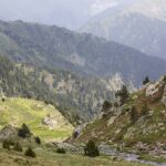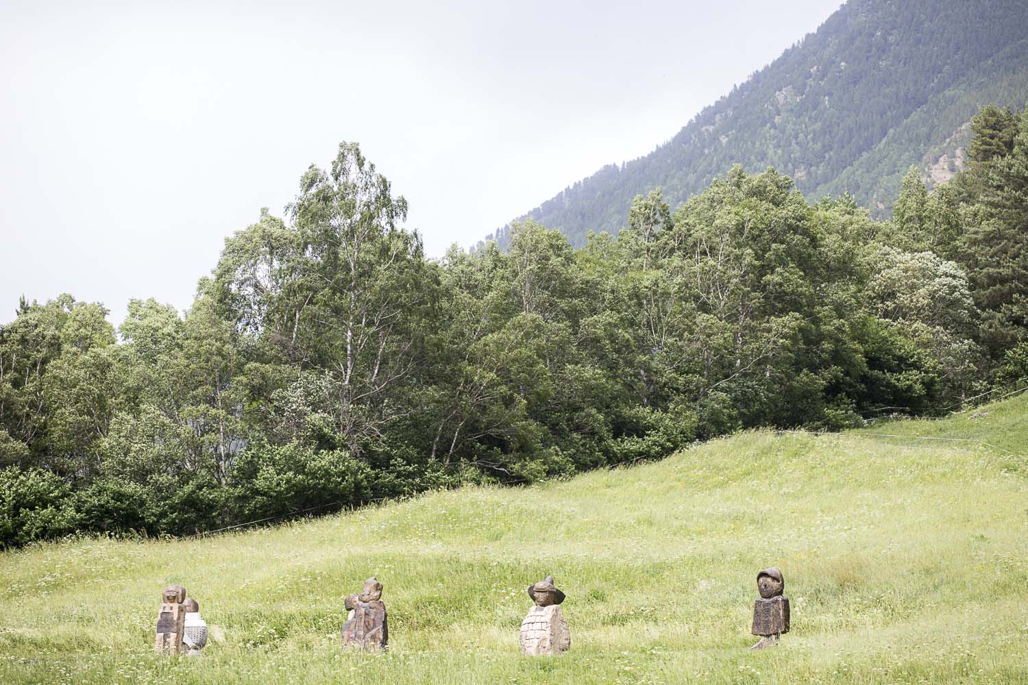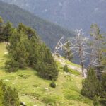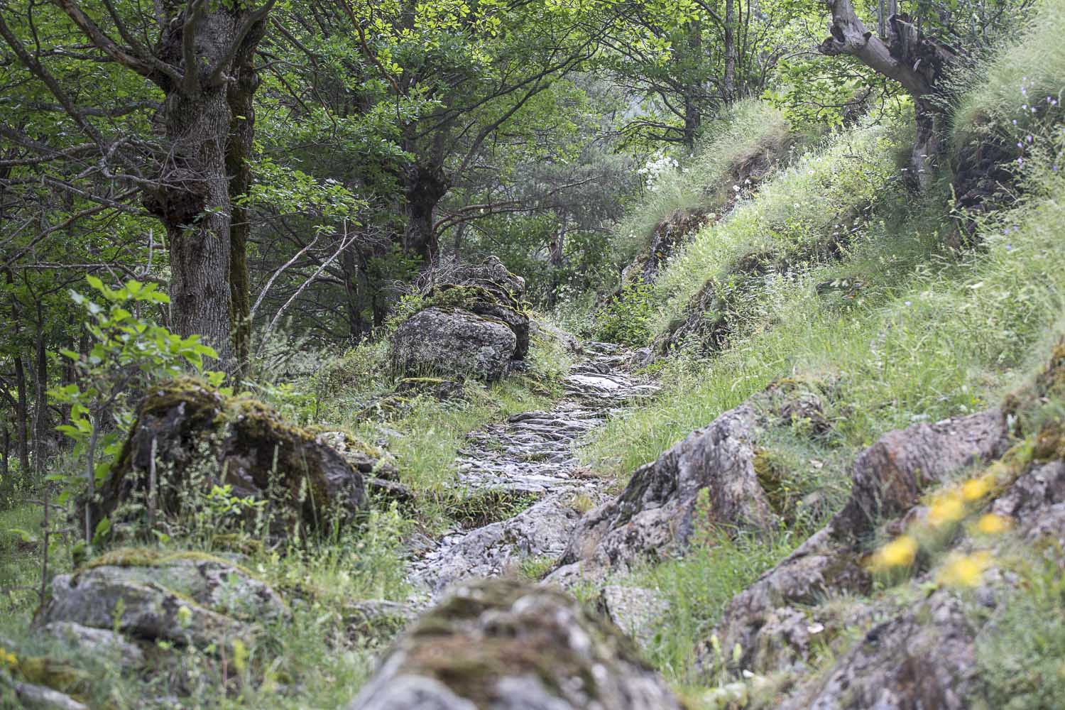 Zejście było piękne i długie. Halami, niżej gęstym lasem. Upał dopadł mnie dopiero na samym dnie, na szosie biegnącej do La Cortinada. Bar w Llorts był zamknięty, ruszyłam szlakiem. Tym chętniej, że była to sławna Ruta del Ferro- tematyczna ścieżka upamiętniająca wydobycie żelaza w dolinie Ordino. Wzdłuż szlaku ustawiono rzeźby. Dziwnie wyglądały wśród piknikowych stołów i plastikowych toalet. Nie wiedziałam czy mój brak entuzjazmu to wina upału czy może rzeczywiście artyści nie przyłożyli się i powstałe chyba na zamówienie dzieła były banalne i miałkie?