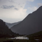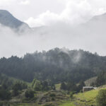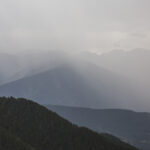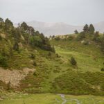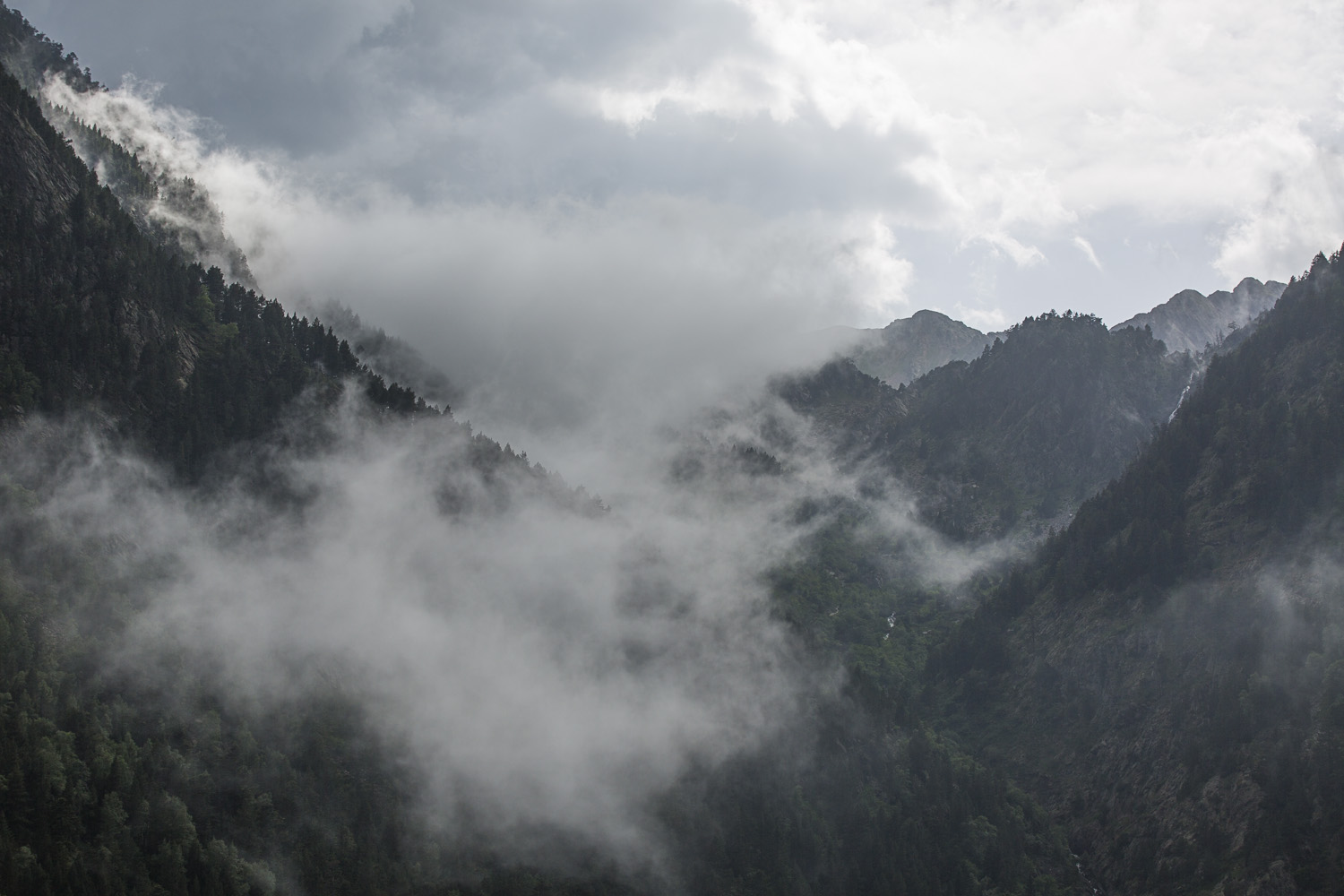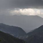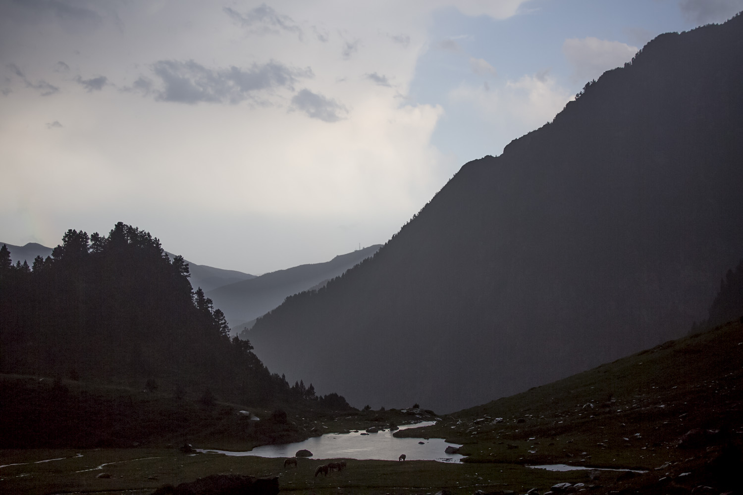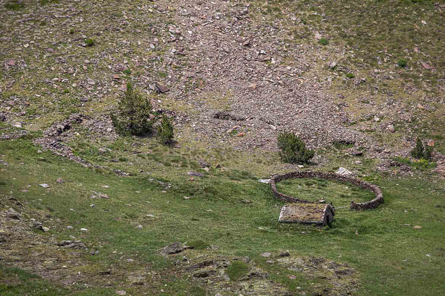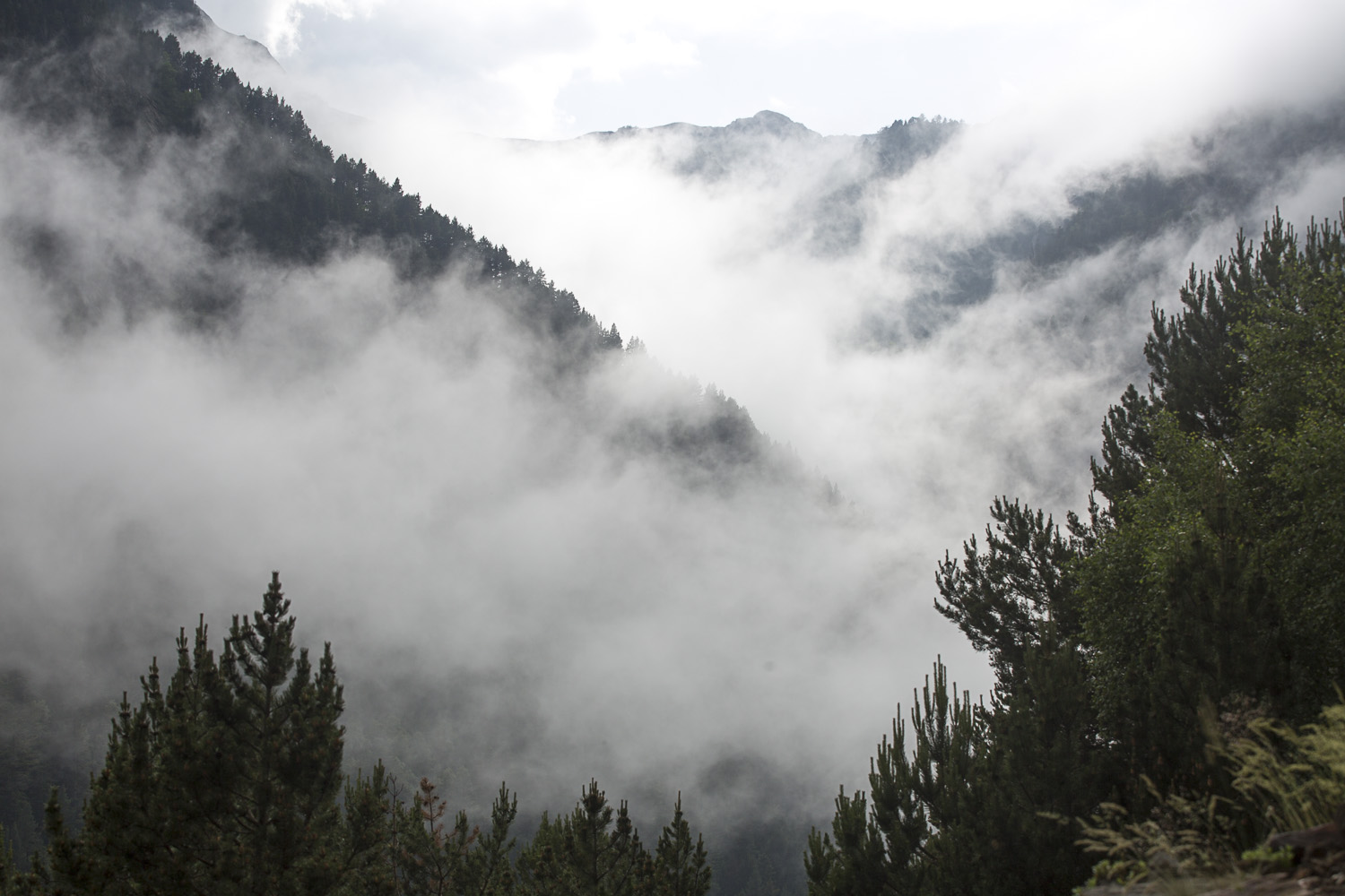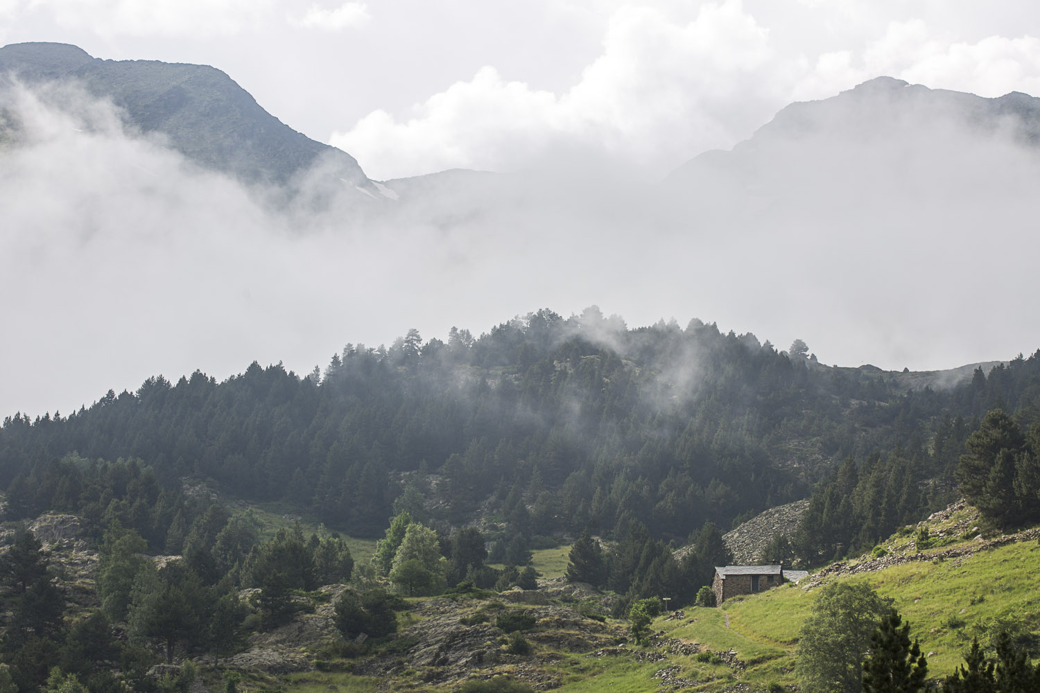 Deszcz dotknął mnie lekko, kiedy usiadłam z kanapką przy Font del Moixo. I bardziej na rozstajach w starej opuszczonej wsi. Otwarta była tylko obórka, schowałam się w wejściu do domu przypłaszczona do zamkniętych drzwi. Nie wiedziałam czy lepiej iść do Estany Fonts i ryzykować ponowne spotkanie z parą z psami, czy wrócić do Pla de Estany. Było ryzyko, że teraz przenieśli się tu… Deszcz nie ustawał, a Pla de Estany była bliżej, więc ruszyłam w kierunku znanego już schronu. Tym razem też z daleka widziałam otwarte drzwi. Wewnątrz był chłopak z dziewczyną. Niemiec i Włoszka. Ona wydawała się lekko rozczarowana że przyszłam, ale szybko zaczęliśmy rozmawiać i to też był bardzo miły wieczór. Przyszli tu tylko na jedną noc nie mieli materaca, dobrych butów, zapomnieli o soli. Zostawiłam im solniczkę i resztkę suszonych warzyw.