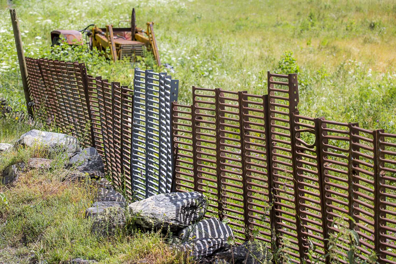 Bardziej podobał mi się rząd ustawionych na niedalekim polu ludzików i spontaniczna (też żelazna) instalacja- płot z recyklingu i zardzewiały traktor. Życie. Szlak skończył się zaraz potem i wsiadłam w autobus.