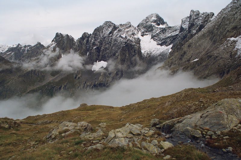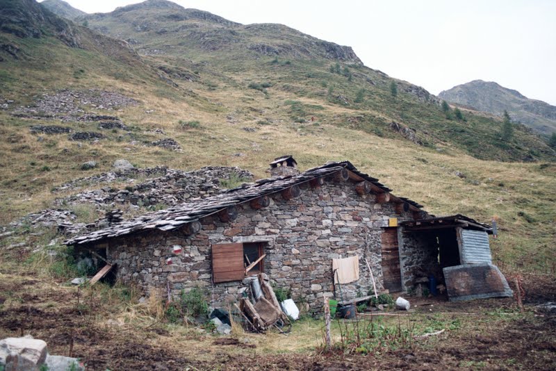 Inne to używane latem przez pasterzy kamienne chałupy. Są w bardzo różnym stanie- ten Bivacco Cigola był we wrześniu okropnie brudny. Wtedy minęłyśmy go i rozbiłyśmy dalej namiot, teraz chyba by mi już ten bród mniej przeszkadzał…