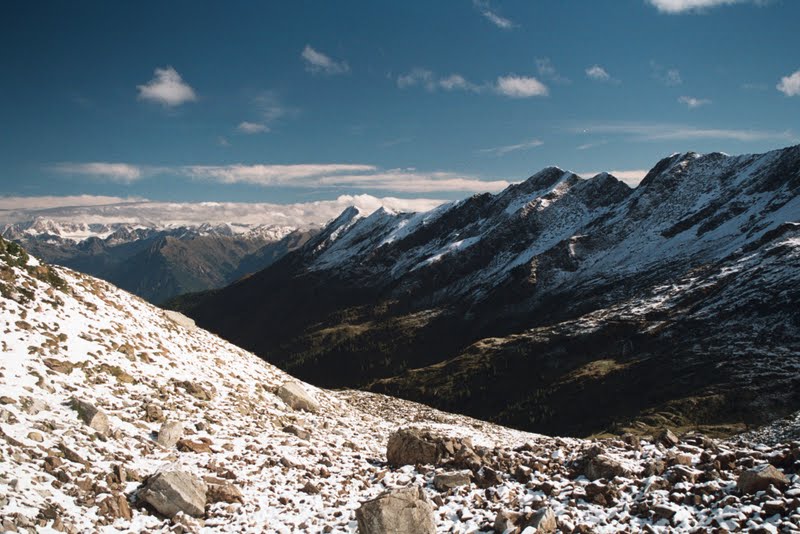 Ścieżka idzie wzdłuż grani przecinając kolejne przełęcze. Nie wchodzi na żaden szczyt, ale ponieważ doliny są strome, nie wiem czy uda się ją zimą przejść.