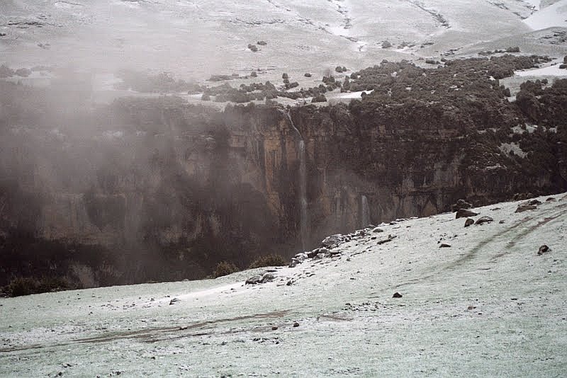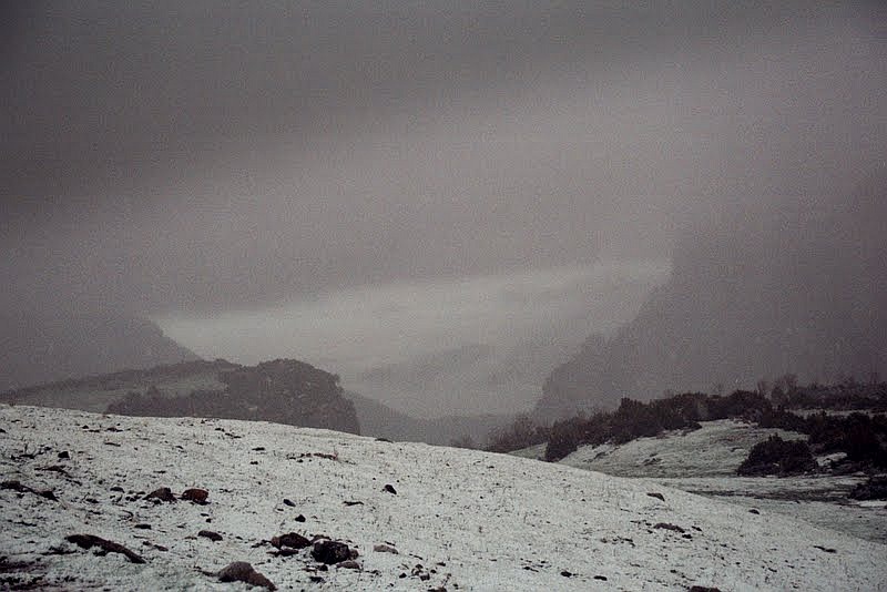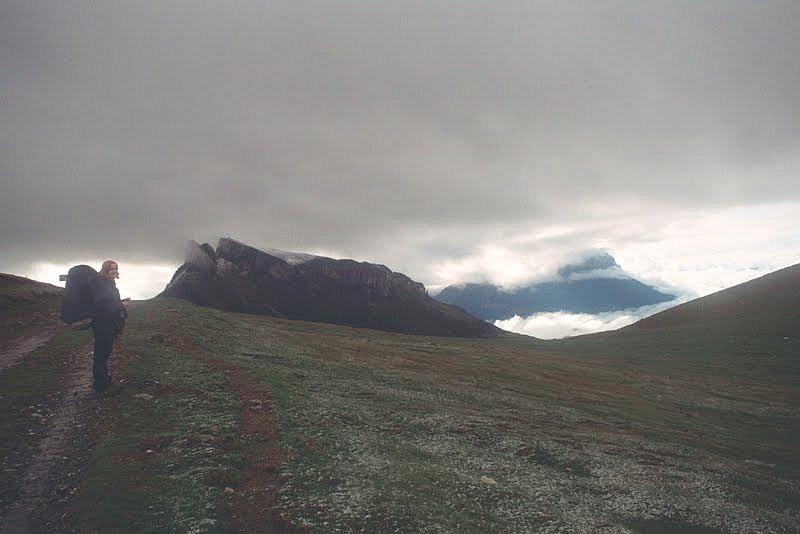 Padał mokry śnieg i nic nie wskazywało, że mogłoby być lepiej, ale kiedy minęłyśmy schronisko na horyzoncie pokazała się różowa plamka… potem urosła i za chwilkę  przed nami pojawiło się morze chmur rozrywające się na Castillo Mayor i wierzchołkach Sestrales.