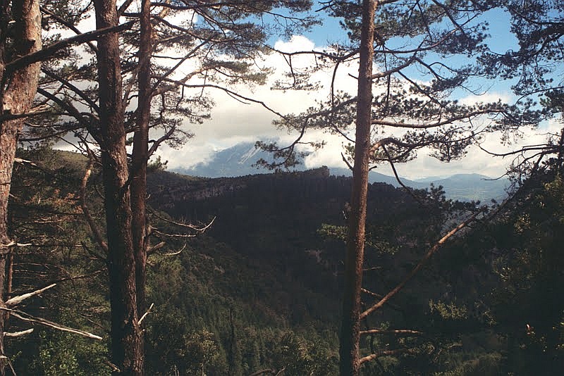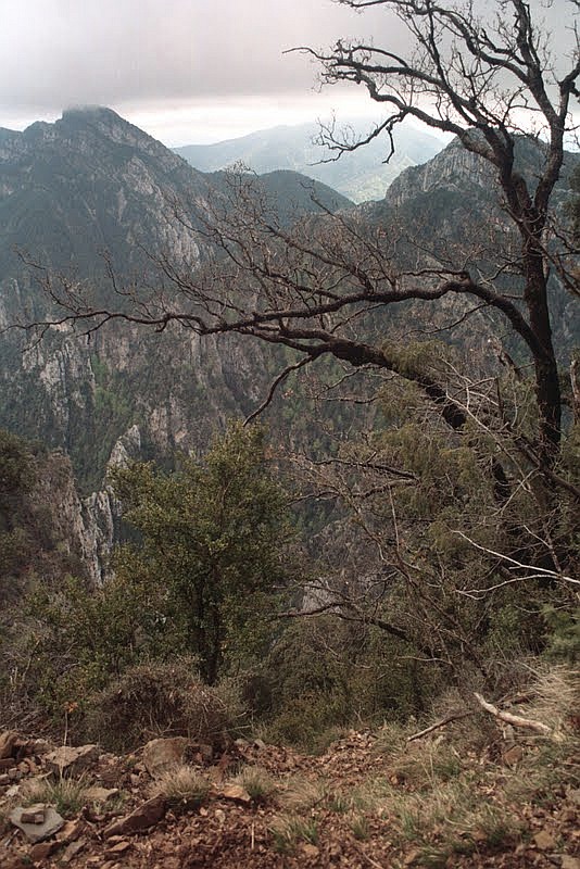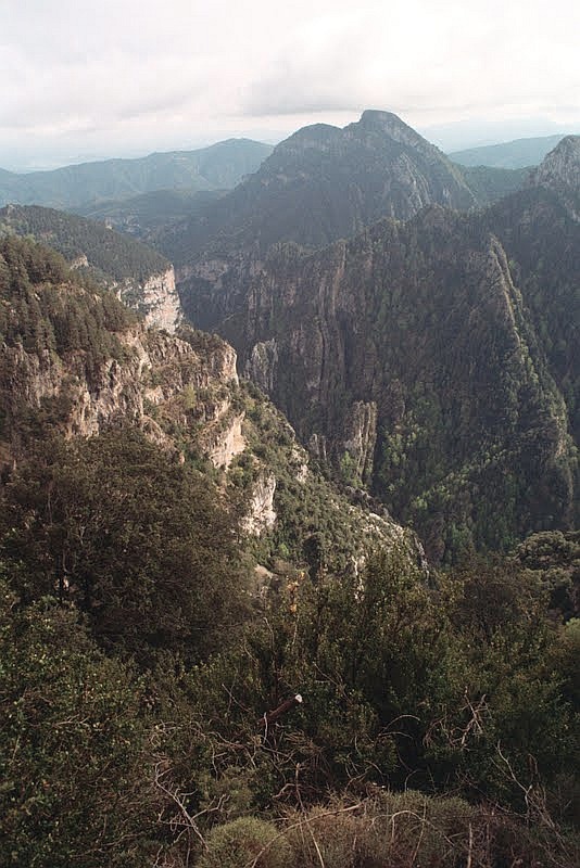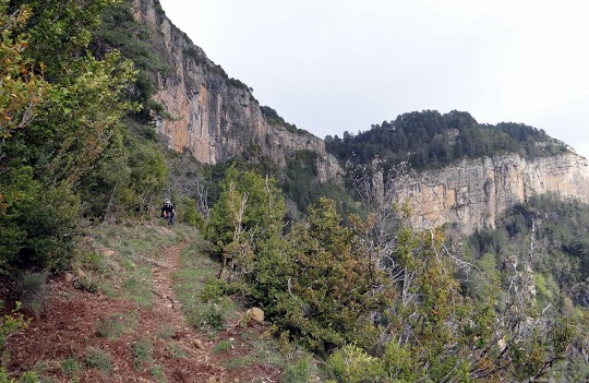 Towarzyszyło nam mnóstwo końskich kup. Wyżej okazało się, że ktoś wyrównał szlak przy pomocy jakiejś brony i powycinał wszystkie jeżyny, bukszpany i róże. Całe szczęście. Teraz to przypominało ścieżkę (chociaż nikt ją jeszcze chyba w tym sezonie nie szedł), kilka lat temu było niemal nie do przebrnięcia. Za zejściem do Escalony przeszłyśmy przez przełączkę i droga weszła w ciąg skalnych półek zawieszonych wysoko nad dolnym odcinkiem kanionu.