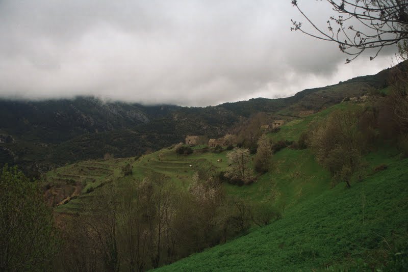 Pogoda utrzymała się niemal do wieczora. Minęłyśmy odejście ścieżki na Sestrales (oznakowane), długo szłyśmy niemal poziomymi  półkami, a potem stromym skalnym rumowiskiem zeszłyśmy  do San Urbez.