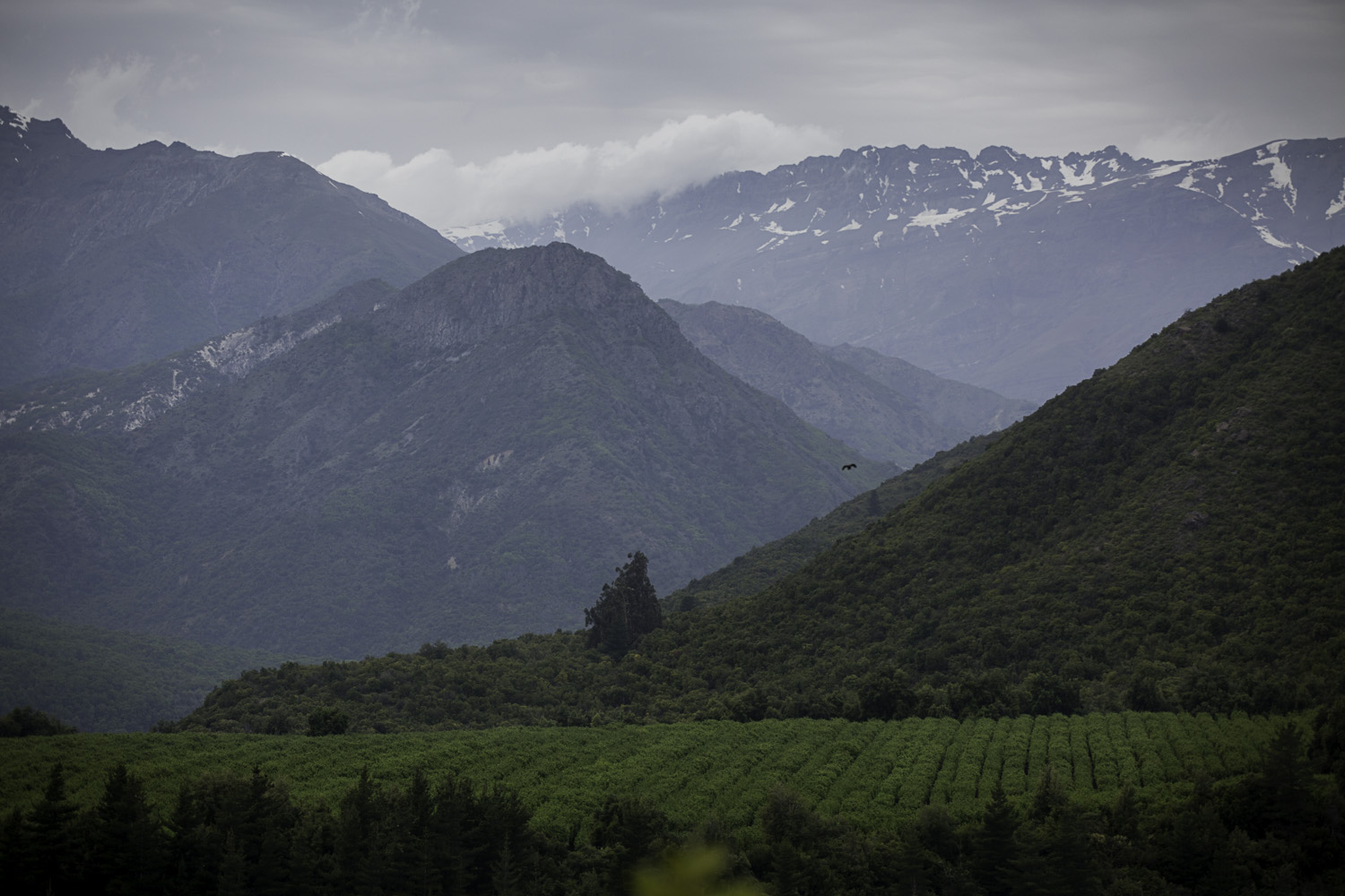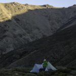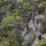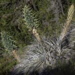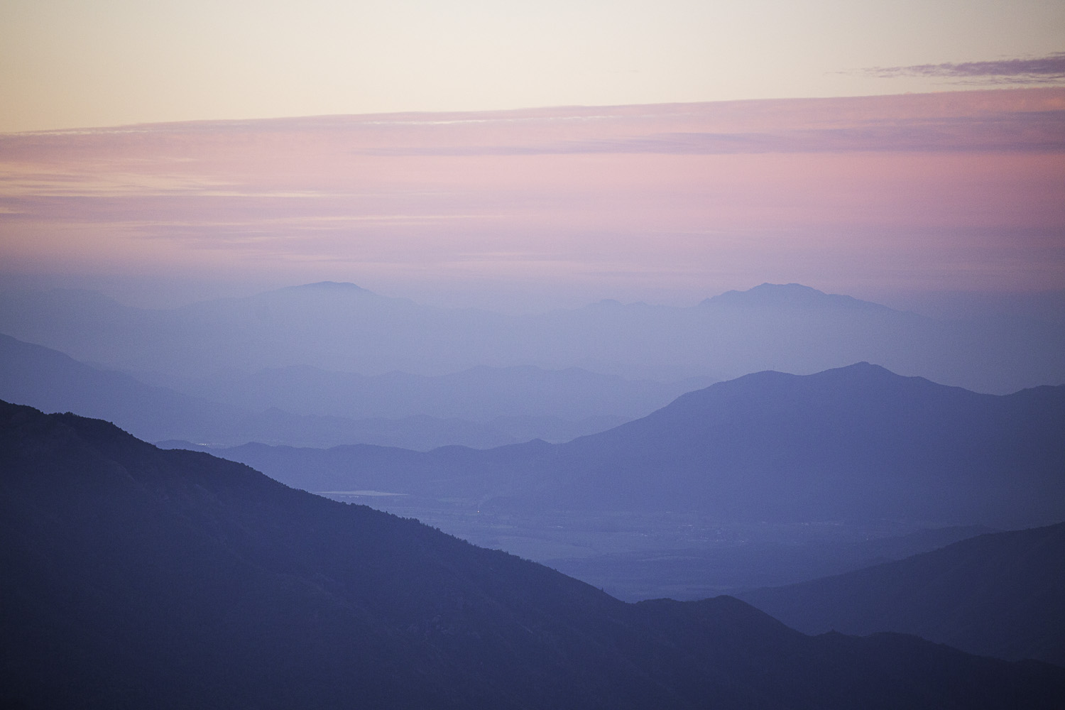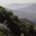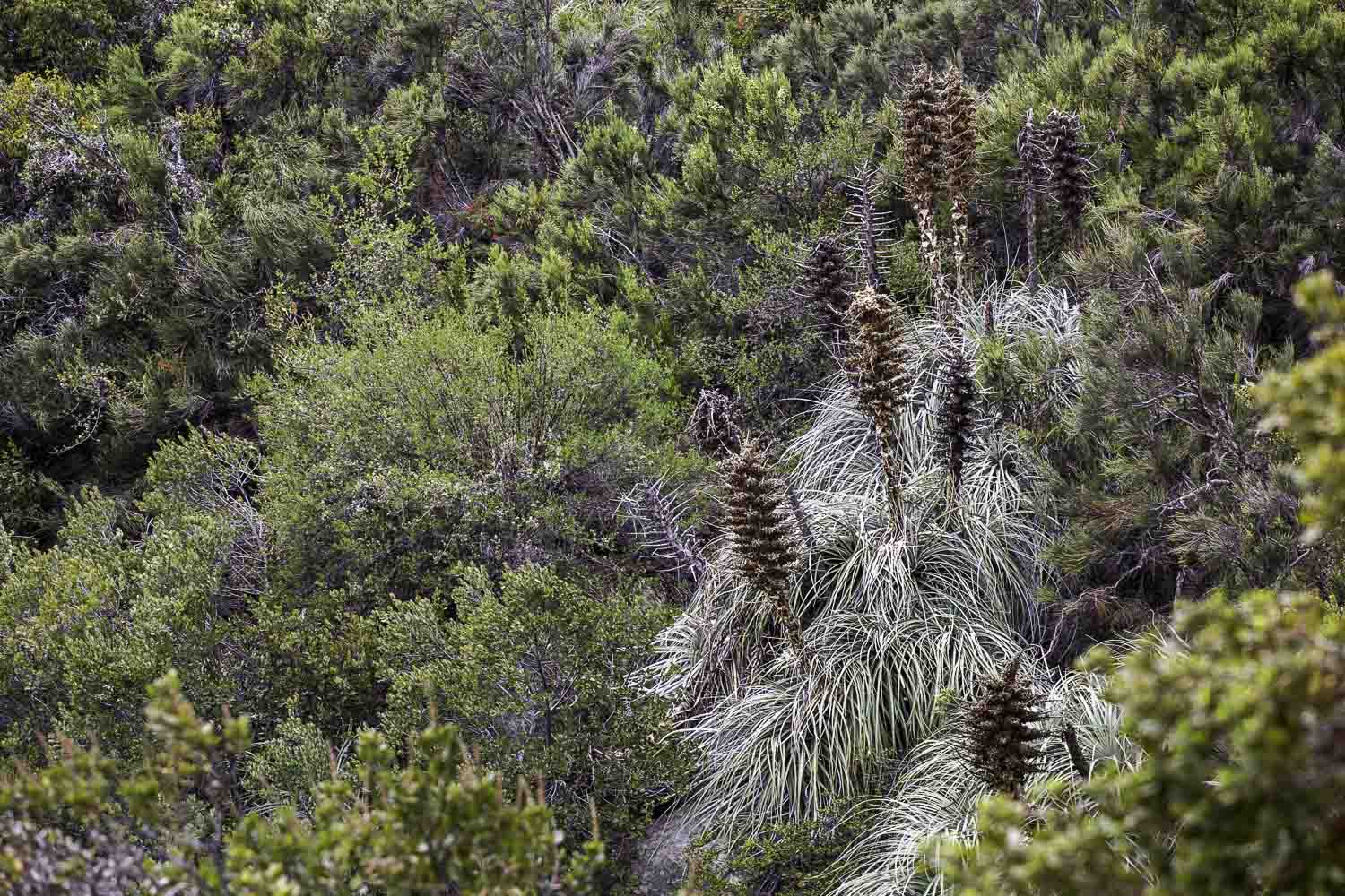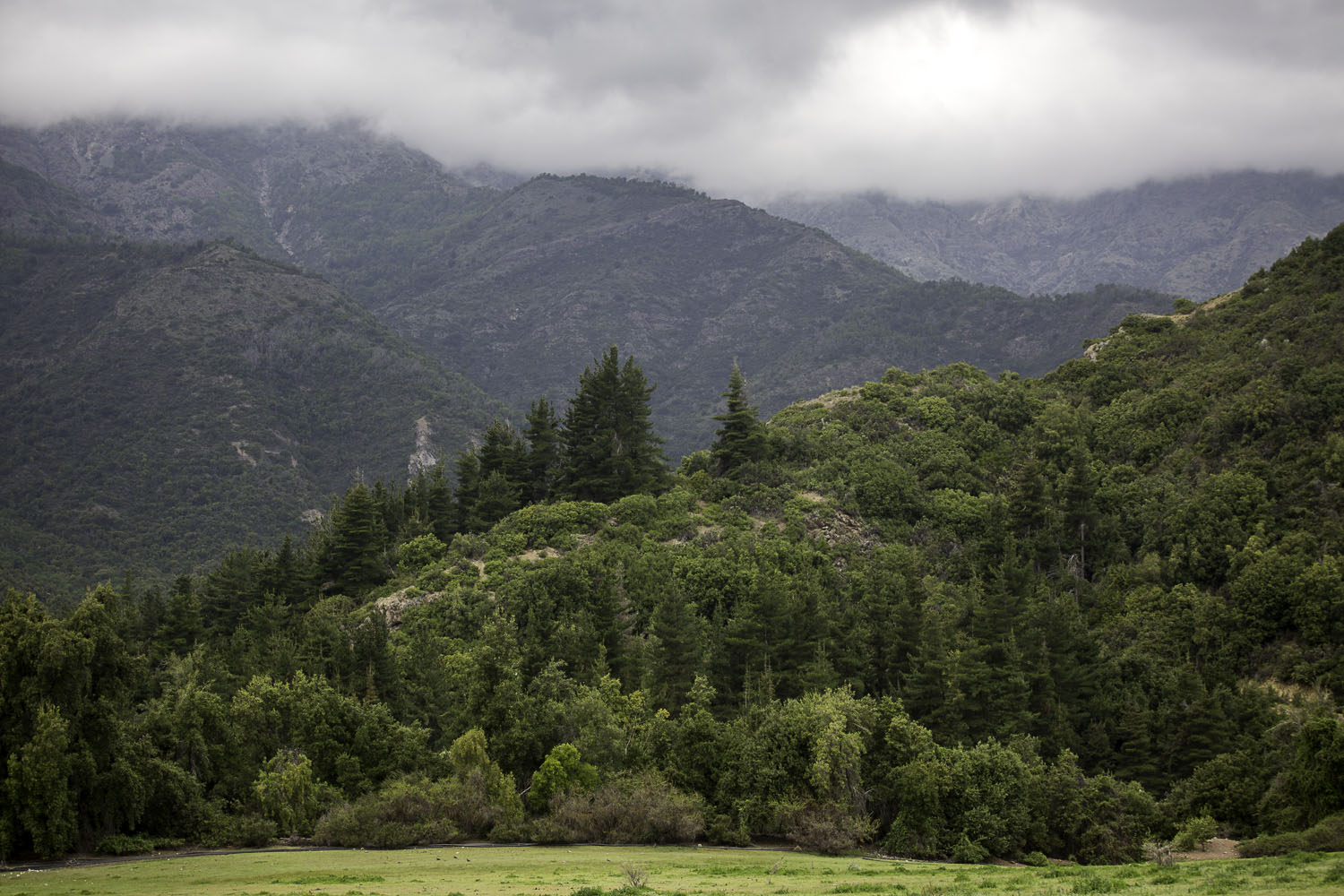 Próbuję trzymać się GPT, ale ślad na mapie prowadzi do czereśniowego sadu, ogrodzonego tak, że nie da się przejść. Zwały drewna, kolczasty drut. Wybieram jakiś inny wariant już bez szlaku. To taka sama gruntowa pylista droga. Na szczęście nikt tu nie jedzie. Podchodzimy lasem, krzakami, droga robi się coraz cieńsza i wyżej zwęża się do konnej ścieżki. Ponad lasem wynurza się wspaniały widok. Południowe zbocza Andów są całe białe. Siadamy przy jeszcze pustych szałasach, filtrujemy na zapas wodę. Jest wcześnie, ale dopada mnie senność, chciałabym zostać w tym pięknym płaskim miejscu, ze wspaniałym widokiem. Jednak zmuszam się i ruszam dalej. Jose wcale nie jest zmęczony. Podchodzimy jeszcze kilka kilometrów, mijamy zarośnięty wąwóz z wartkim potokiem. Na wysokich wiechach puya alpestris otwierają się właśnie pierwsze kwiatki. Ich turkusowy kolor (tak jak poprzednio) wydaje mi się nieprawdziwy. Plastikowy. Zostajemy na wypłaszczeniu z kępami kolczastych krzewinek. Ziemia jest pełna króliczych nor i krowich placków. Dobrze, że nabraliśmy wody w potoku.
