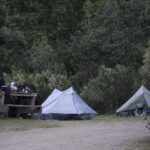 Noc jest wilgotna i upycham swój namiocik pod wiatą