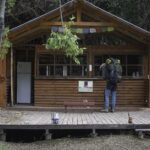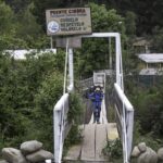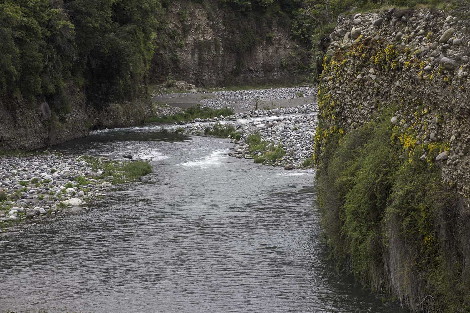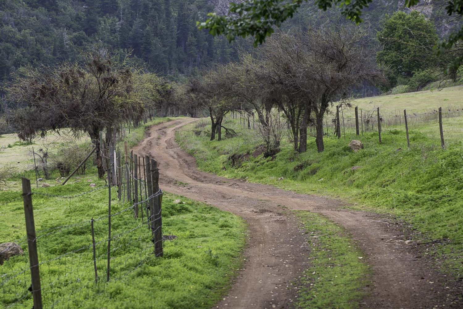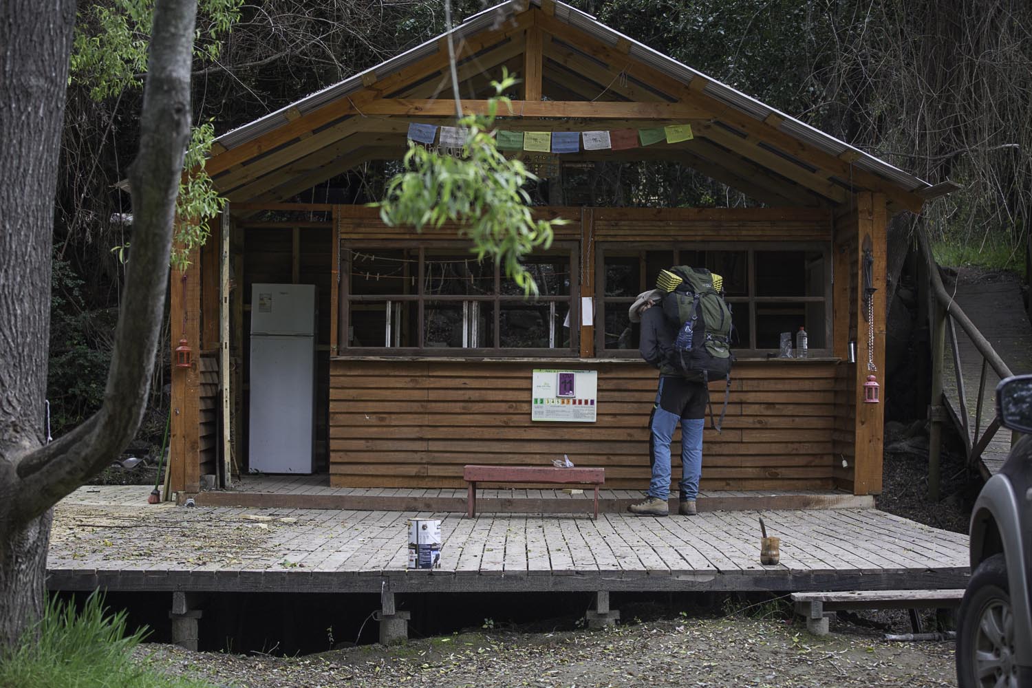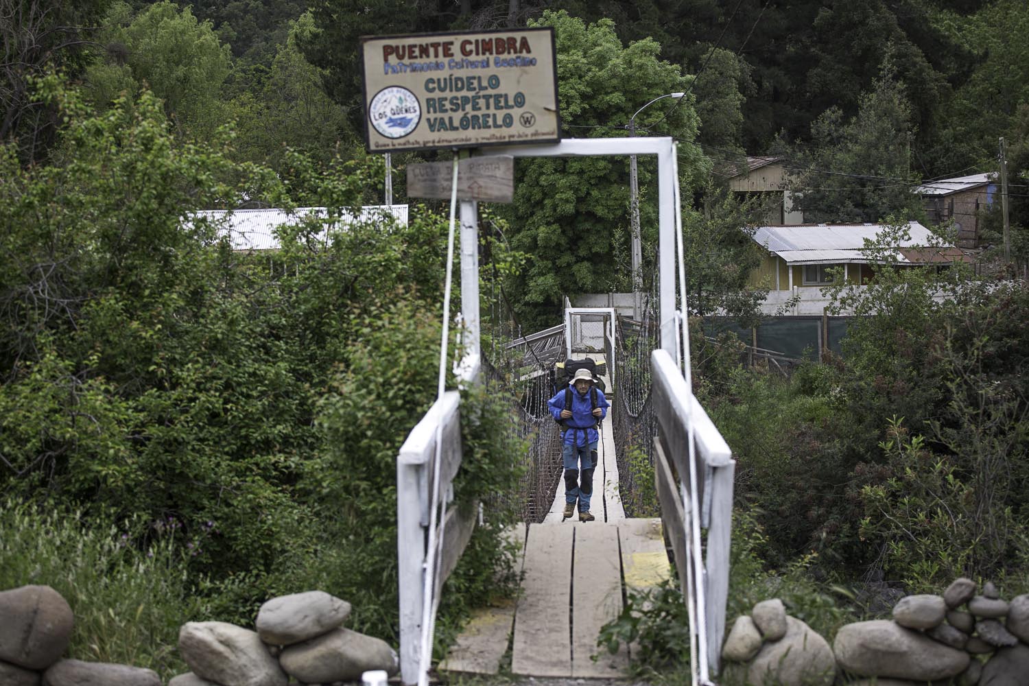 Niżej zabieramy operatora drugiej koparki. Na końcu, już prawie we wsi jest brama. Czekamy aż panowie ją otworzą i znów zamkną na klucz. Wahają się przez moment, zapraszają żeby zjechać z nimi do Curico, ale chcemy zostać i dalej wędrować górami. Odwożą nas w takim razie do Las Quenes. To tu byśmy zeszli gdyby nie śnieg, zaznaczyłam sobie na mapie kemping. Jest zamknięty. W sklepie dowiadujemy się, że jest też drugi, kajakowy za wiszącym mostem. Jest pusty, ale pani spotkana po drodze dzwoni do syna. Płacimy po 10000 i mamy dla siebie cały plac i czajnik. Matheo przychodzi wieczorem pogadać. Pokazuję mu moje mapy i plan, potwierdza, że to się da zrobić. Pod prysznicem zalega kołderka z liści, z sufitu zwisają pajęczyny, zbite z nieheblowanych dech drzwiczki zarósł odwieczny kurz, ale woda jest gorąca jak trzeba i wspaniale się tam wysypiamy.